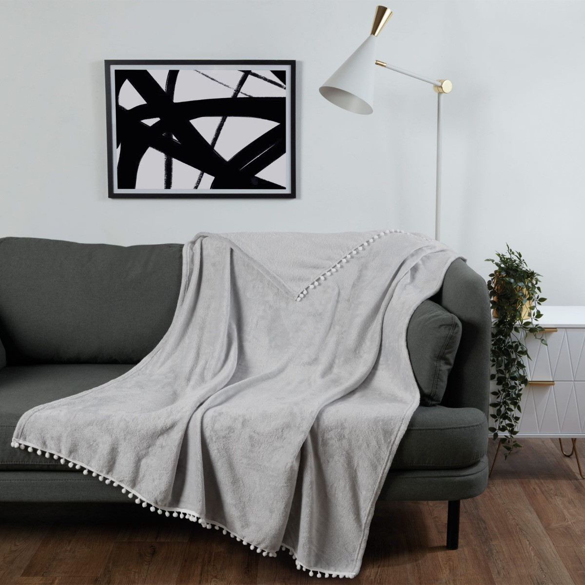 OHS Flannel Fleece Pom Pom Throw - Grey