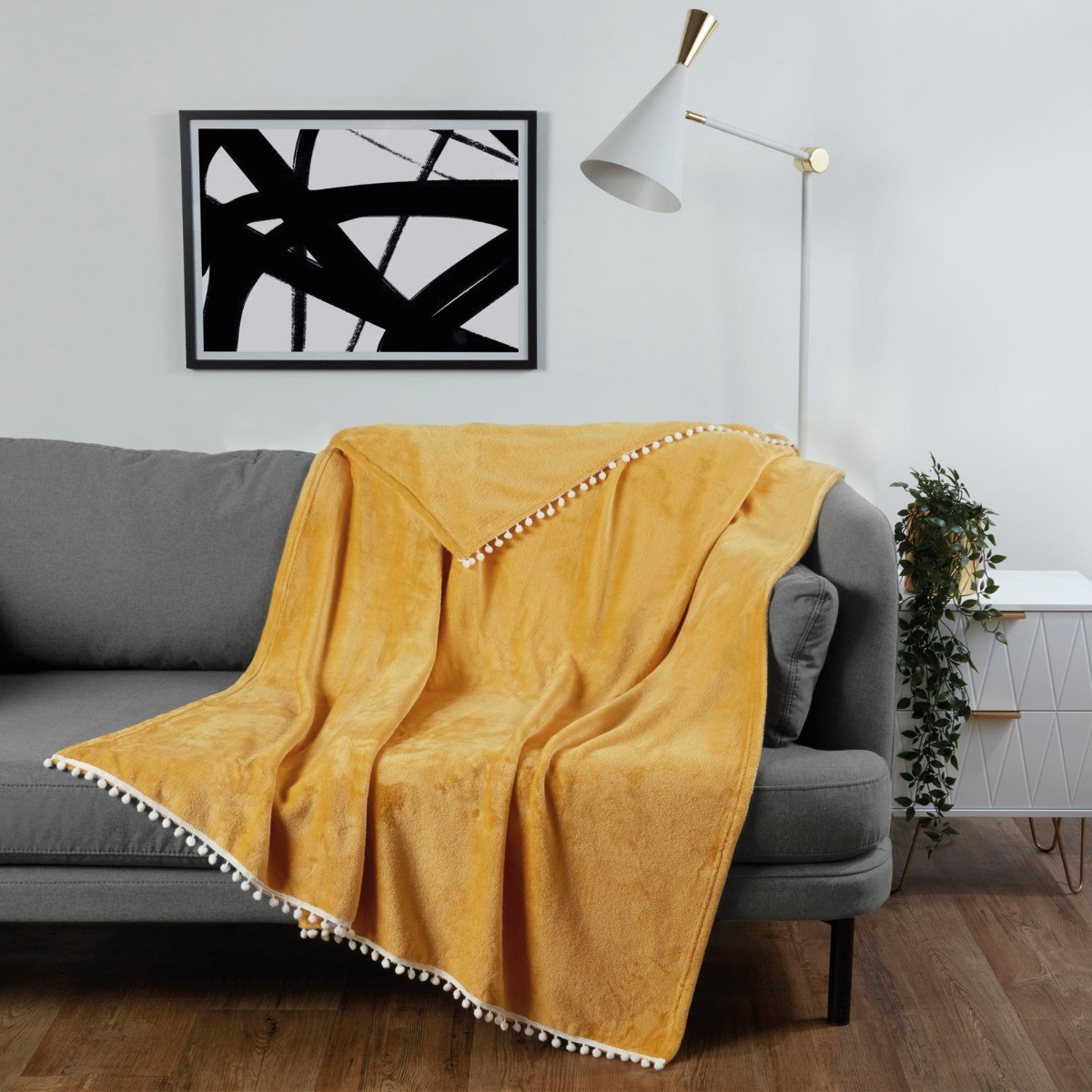 Enjoy warmth and comfort with our supersoft fleece pom pom edge throws from the OHS Range, which is perfect for use as a throw over furniture such as couches, beds and sofa beds. The superbly soft plush material makes this the perfect blanket to snuggle up to, and the modern pom pom trim adds a vibrant look and decorative feel to any room. It's multi purpose use allows for travelling, glamping or camping as it can be easily rolled up and stored in a bag or in the car. Never be cold again when you snuggle up to this blanket!