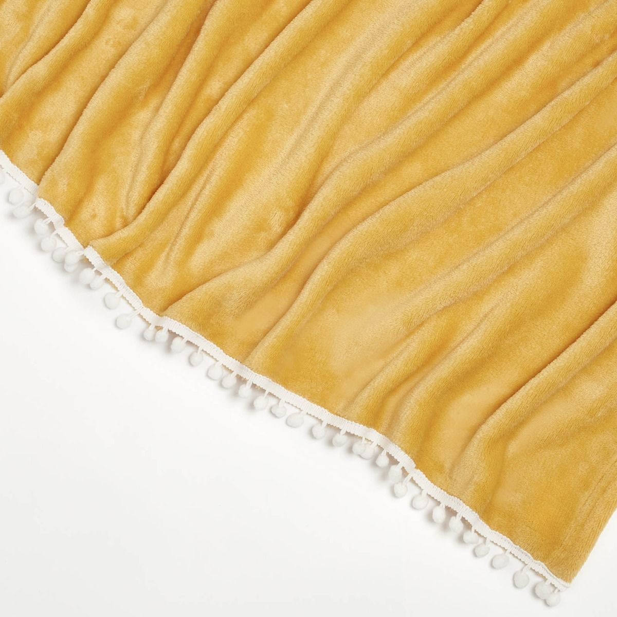 OHS Flannel Fleece Pom Pom Throw - Ochre