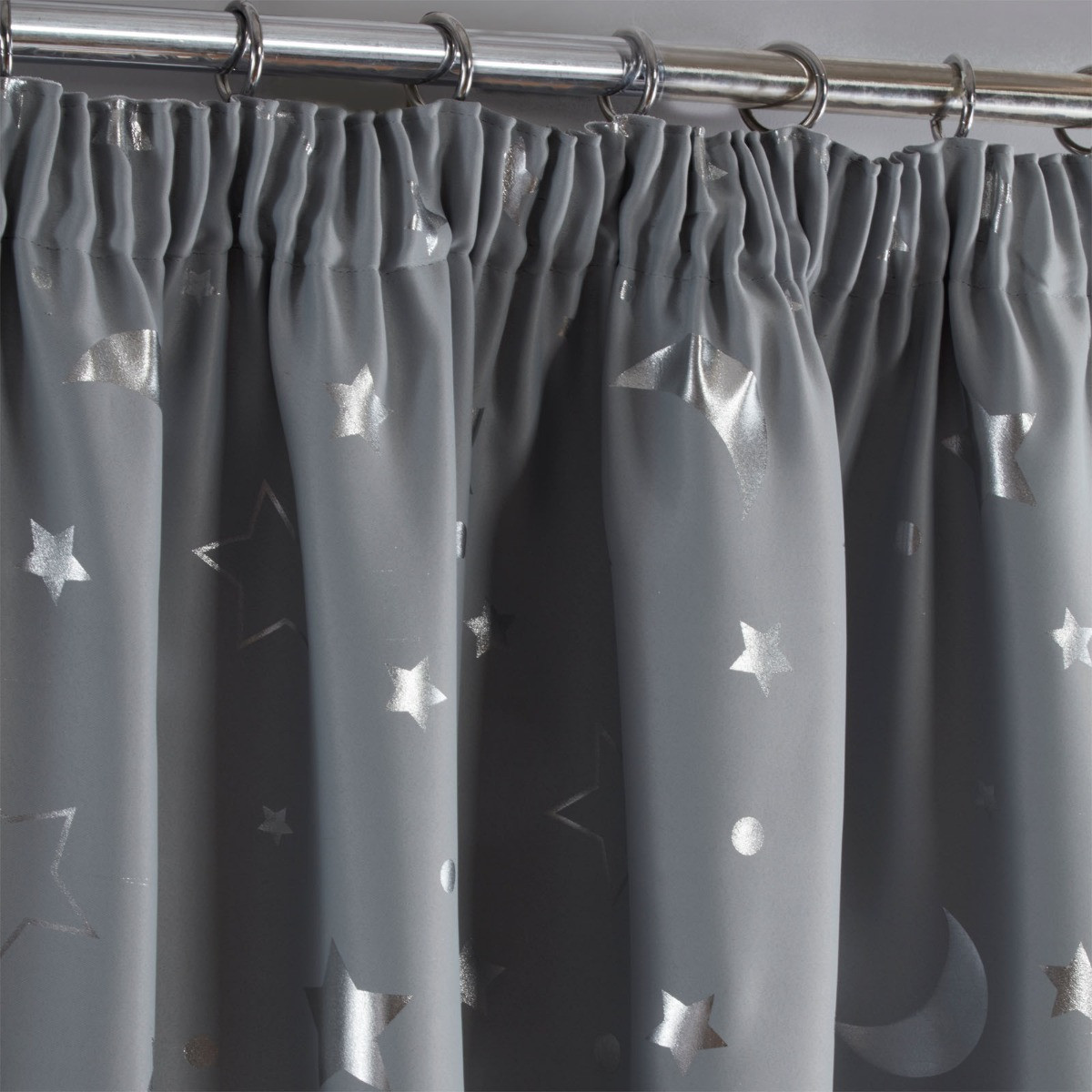 OHS Galaxy Star Blackout Pencil Pleat Curtains - Silver Grey