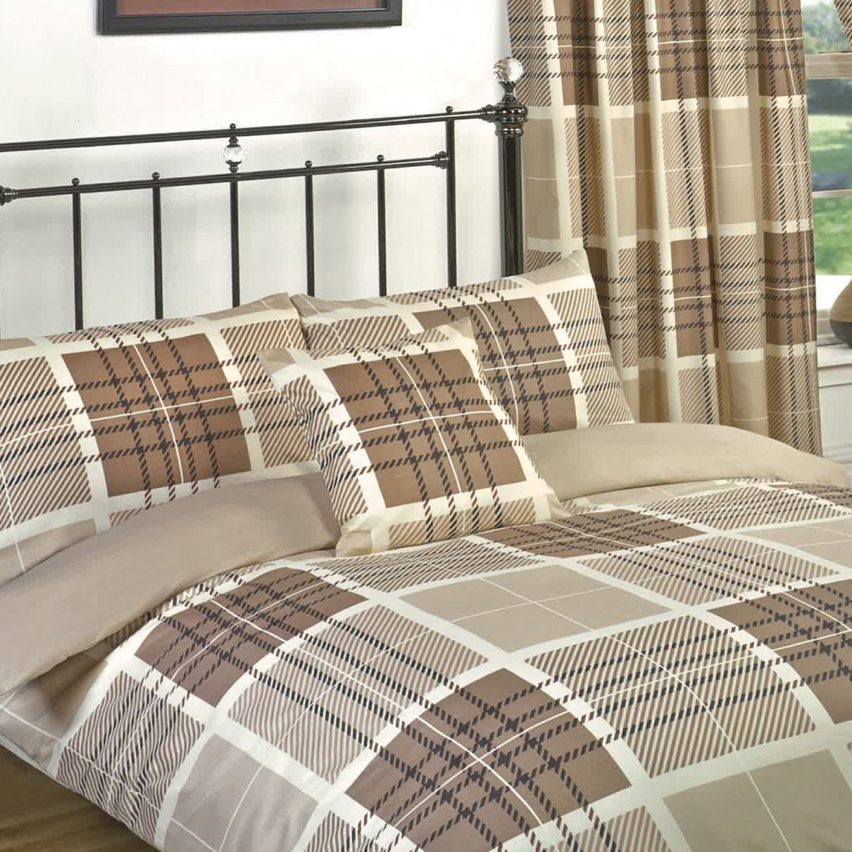 This tartan check bumper set will transform your bedroom with a modern appearance and feel by adding this soft duvet cover set to your bedroom decor. The bedding has a stylish design and colour scheme. Comes with matching pillowcases and curtains. This duvet set is made from 100% polyester making it soft, comfortable and durable.
