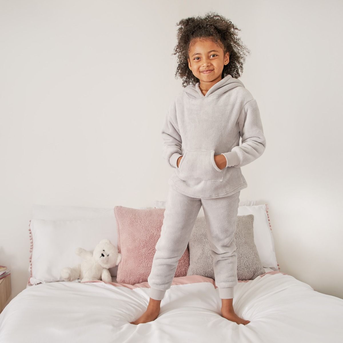 OHS Kids Sherpa Fleece Hoodie Pyjama Set - Grey