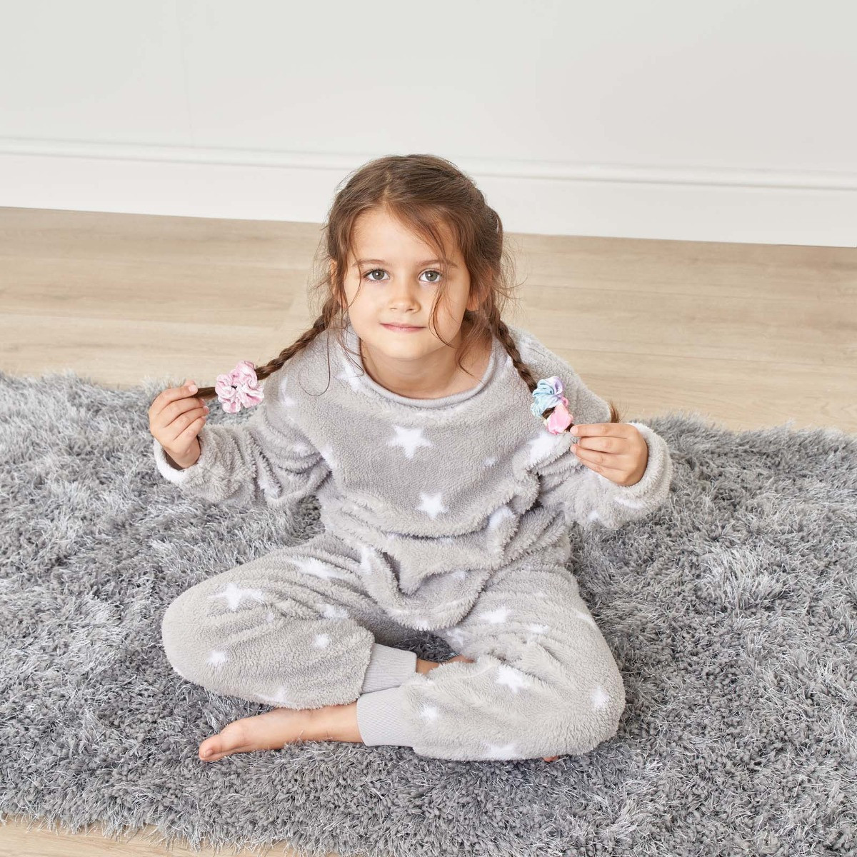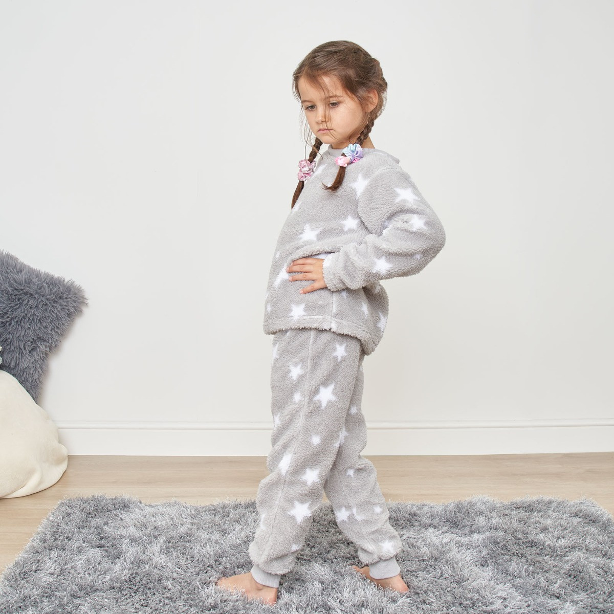 OHS Kids Star Print Fleece Pyjama Set - Grey