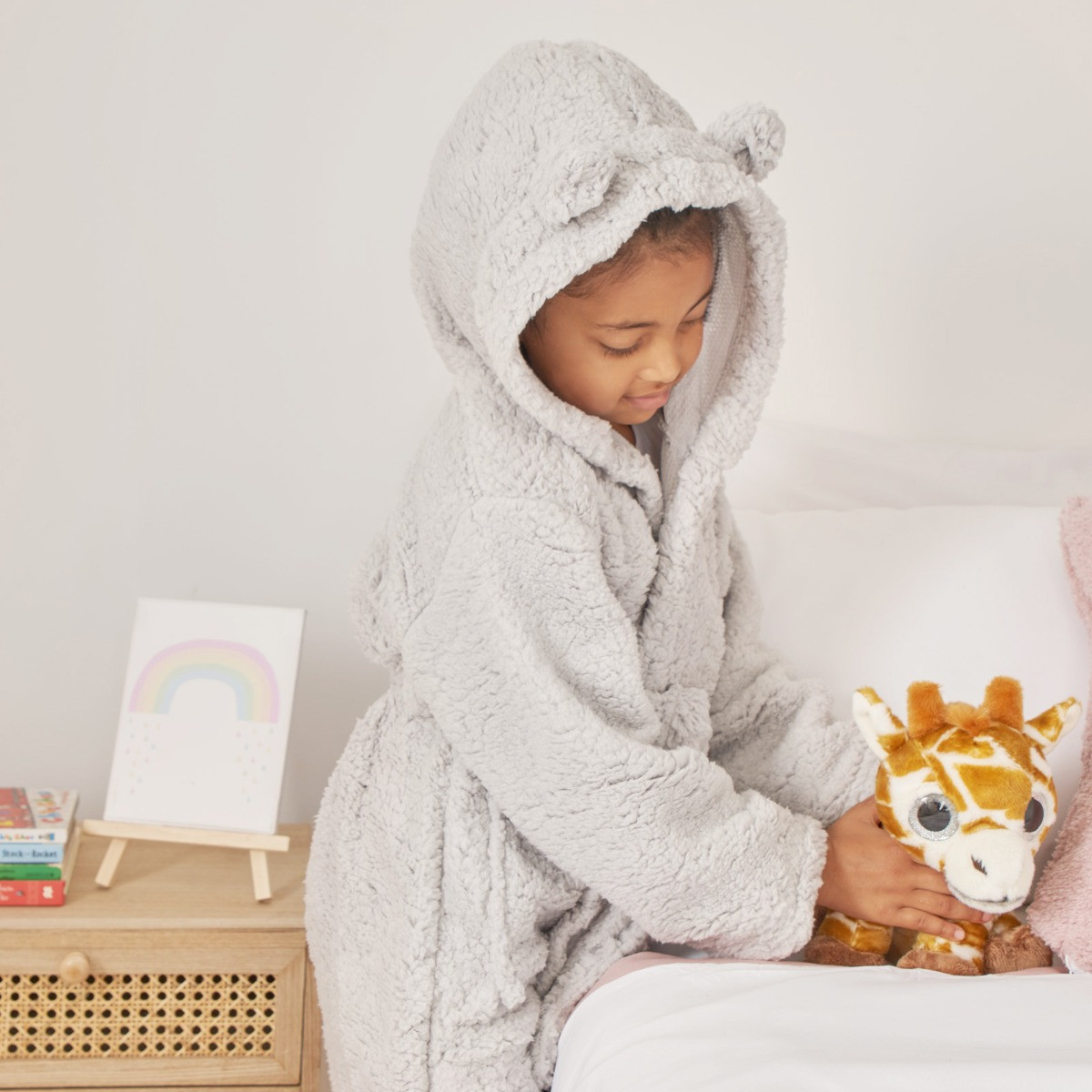 Includes: 1 x Teddy Fleece Hooded Dressing Gown.