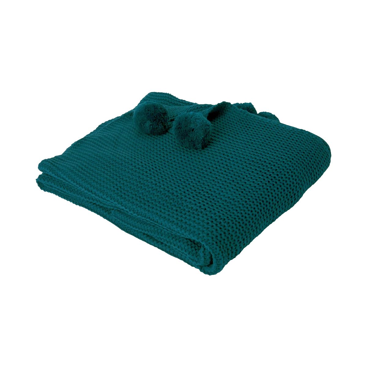 OHS Large Chunky Knit Pom Pom Throw, Teal Green - 150 x 180cm