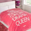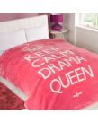 OHS Large Soft Blanket Throw Keep Calm Drama Queen Pink White 200 x 240cm