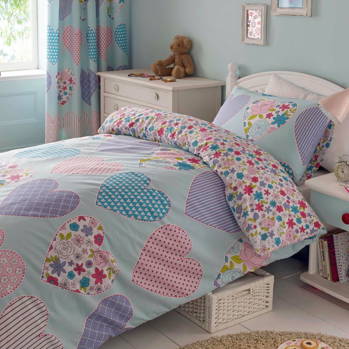 OHS Patchwork Heart Love Duvet Cover Set, Multi - Single