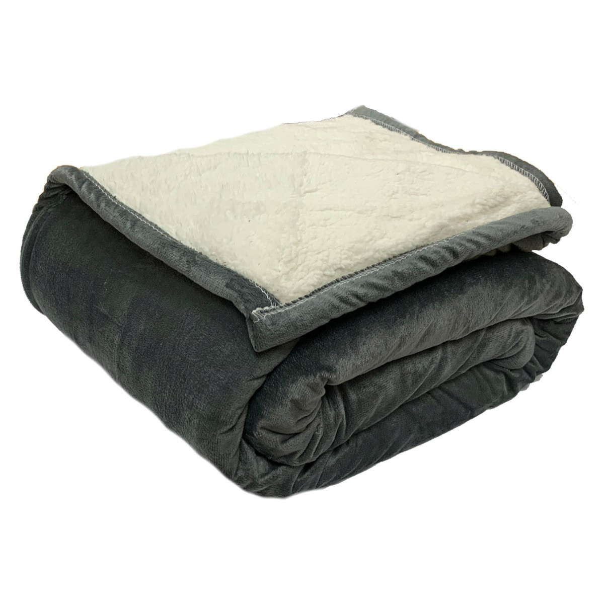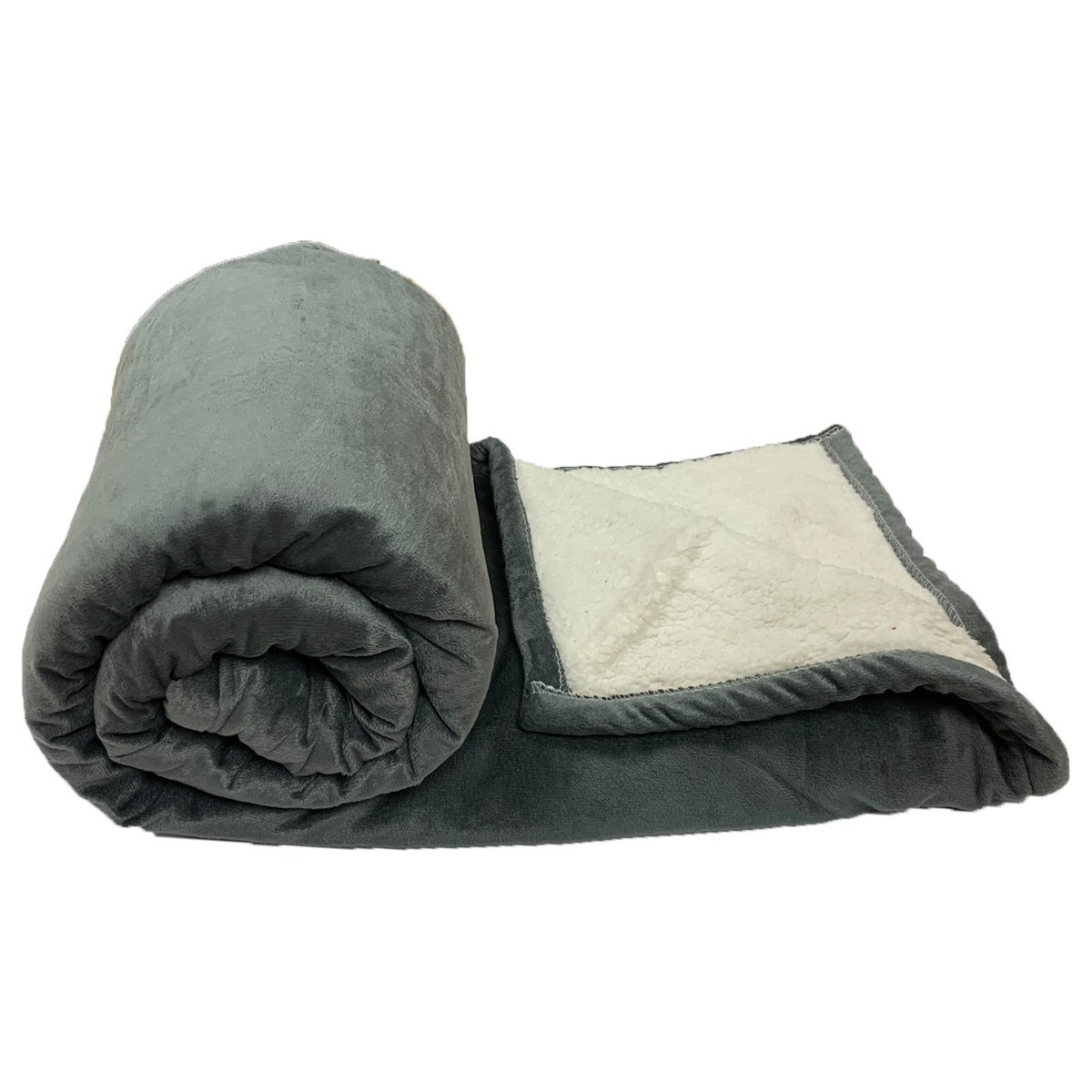 OHS Plain Sherpa Fleece Throw, Grey - 150 x 180cm