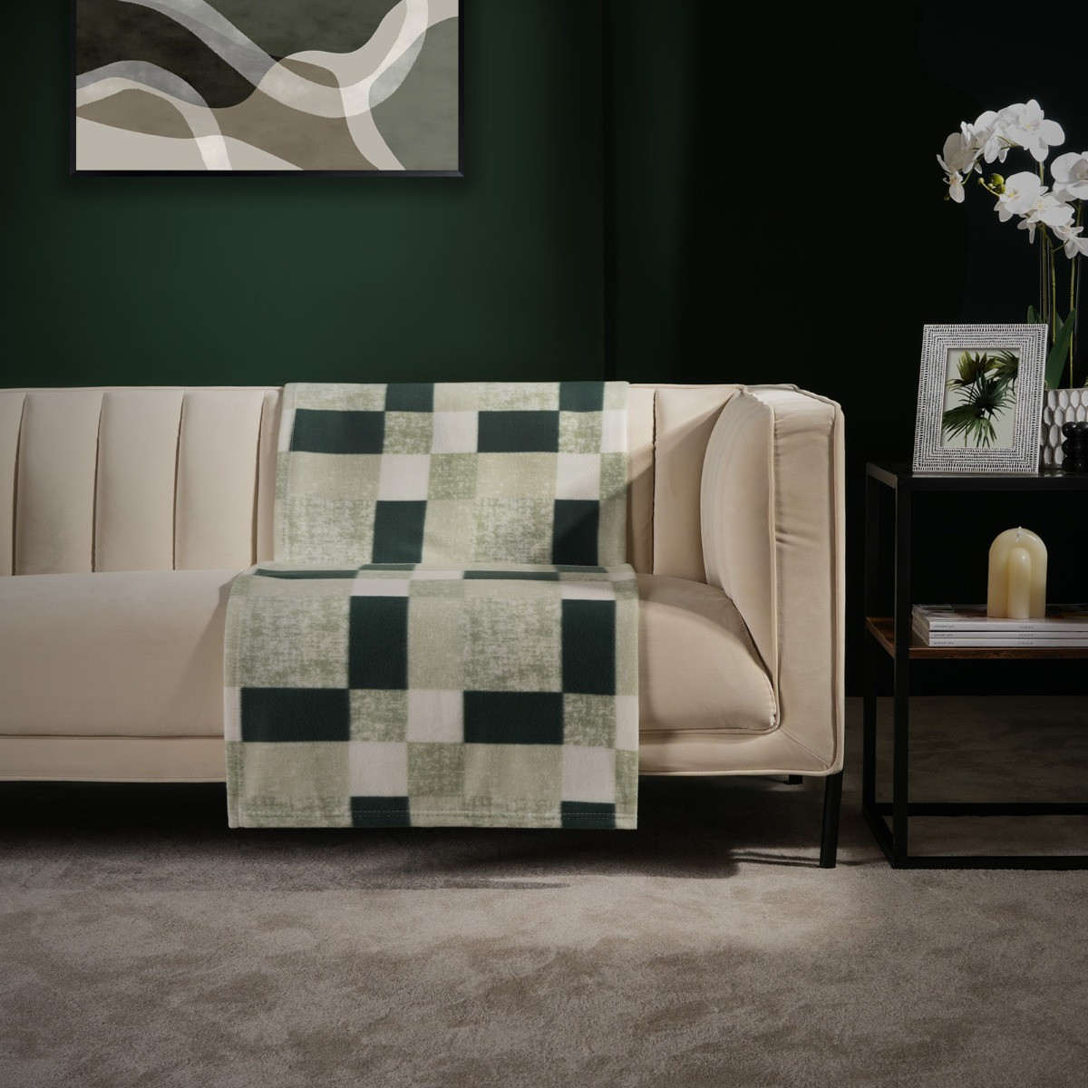 OHS Tartan Check Fleece Throw - Forest Green