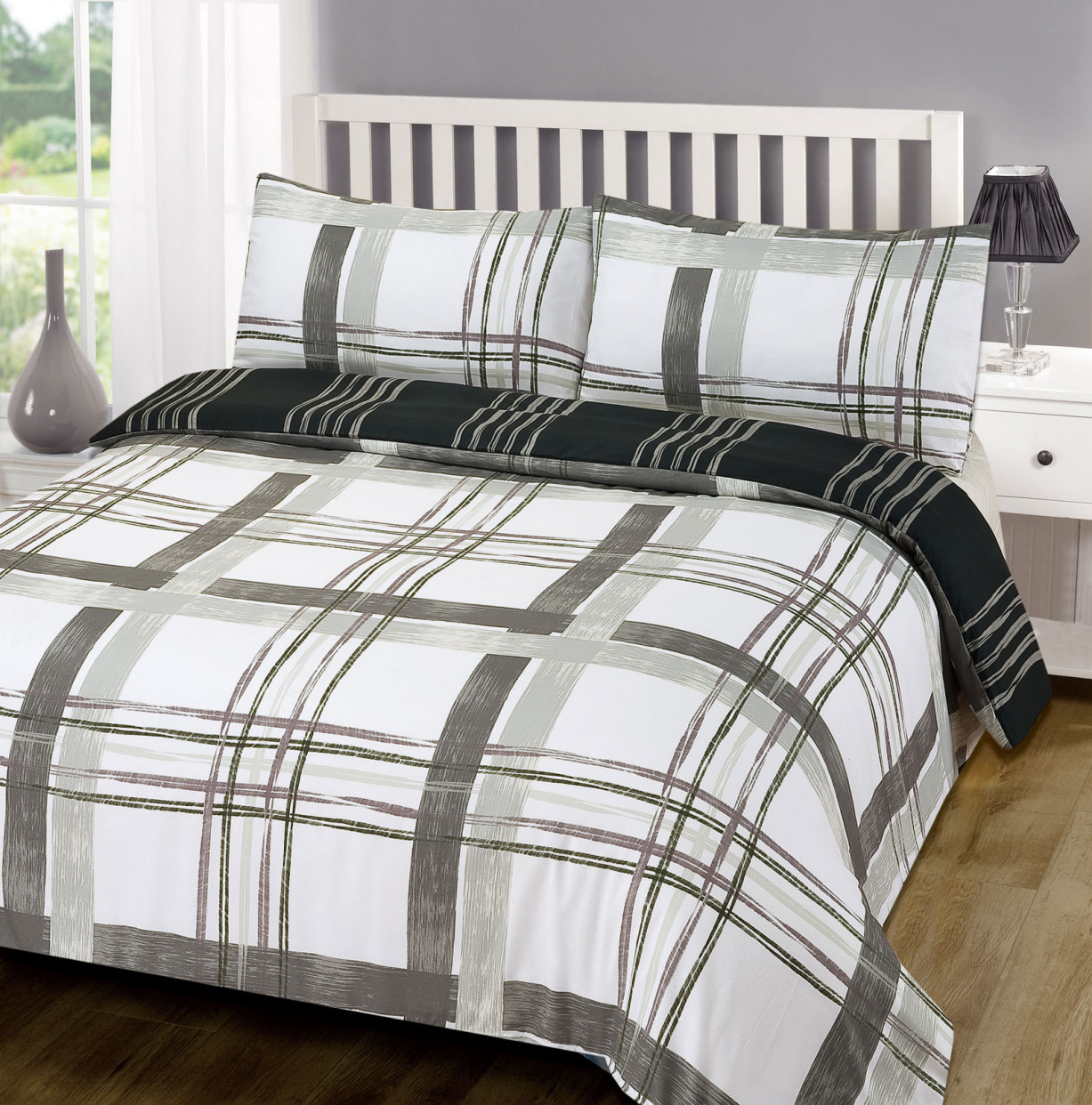 This reversible Poole tartan check bed duvet set would look ideal in any bedroom due to its pretty design and colours, a perfect way to give your room a fresh look. This duvet set is made from 100% polyester making it soft, comfortable and easycare. Comes with matching pillowcases. Available in the following sizes:-