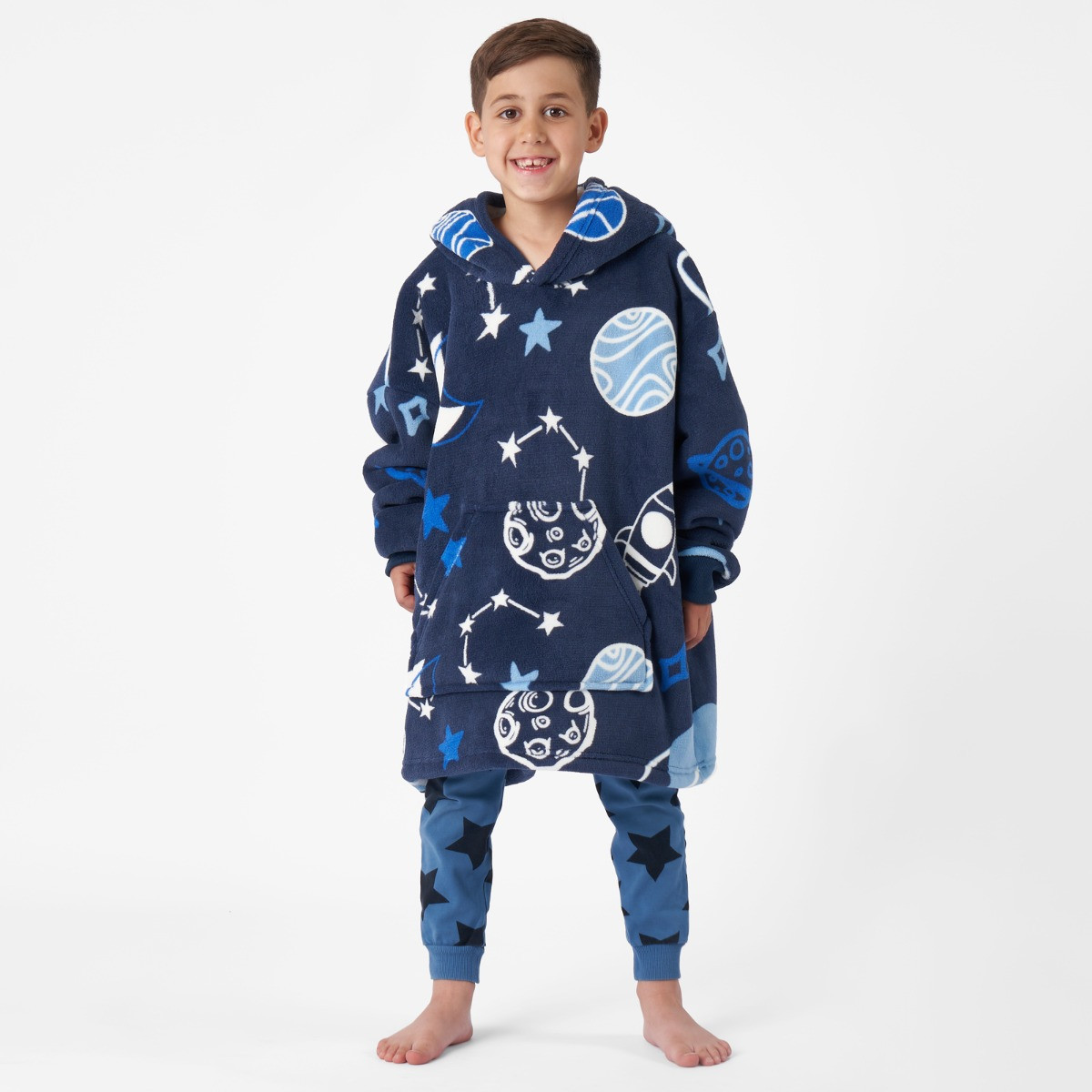 OHS Space Print Hoodie Blanket, Kids - Navy