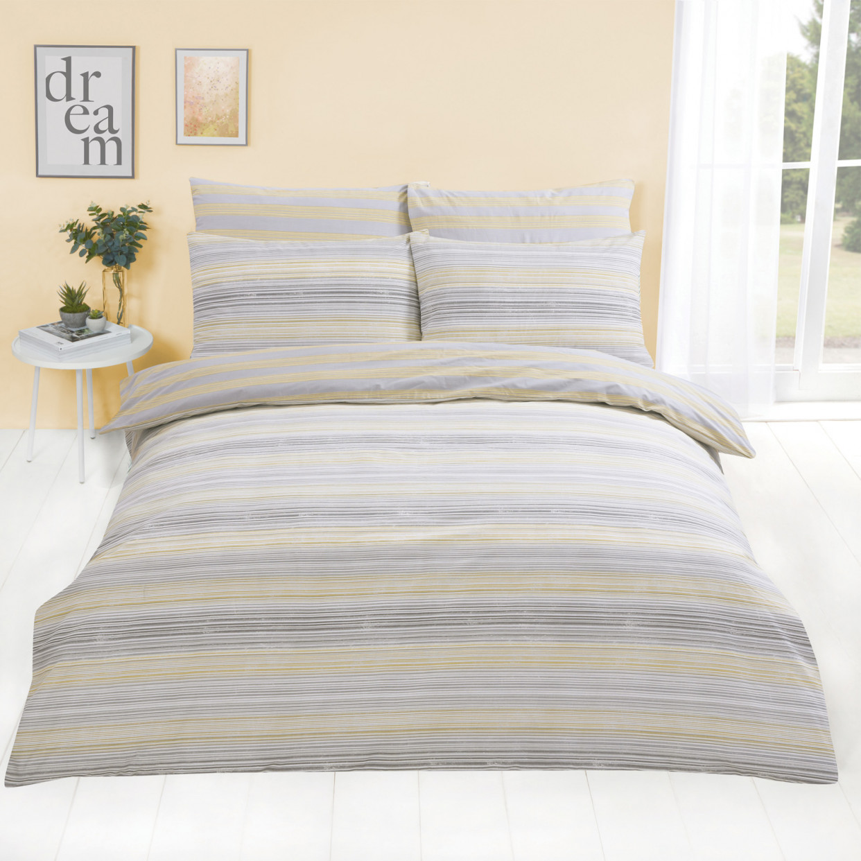 OHS Speckle Stripe Duvet Cover with Pillowcase - Yellow