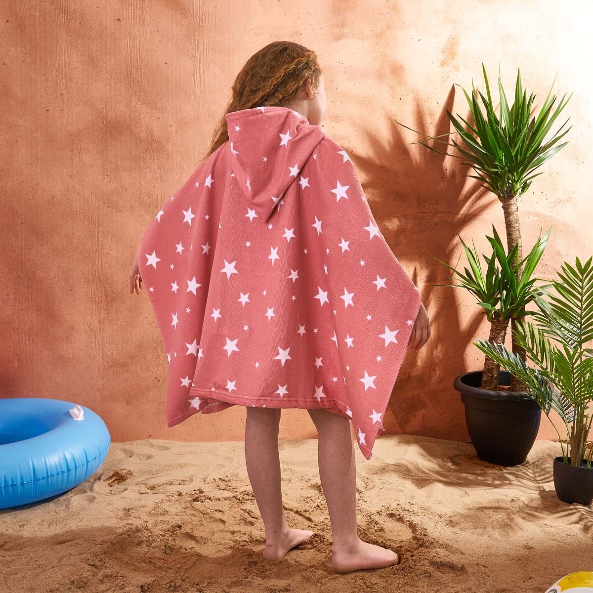 OHS Kids Star Print Hooded Towel Poncho - Blush Pink