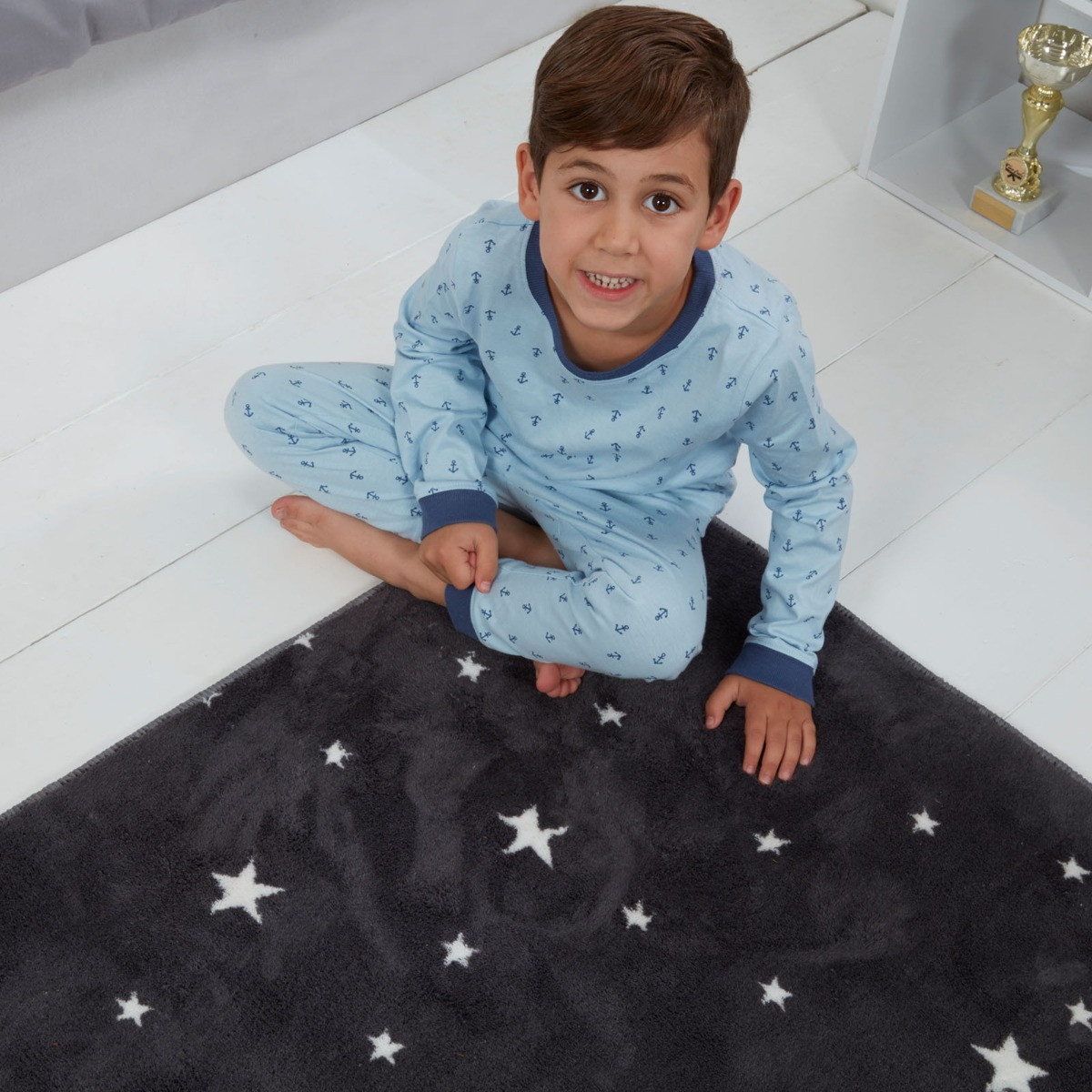 This soft kids star print floor rug from the OHS will add a fun, and colourful look with its soft warm touch, and the short smooth fibres ensure a cosy versatile look. Created in charcoal grey with a white star print, this ensures the rug can be paired with other colours in the home. With its non-shed qualities and stitched, folded and glued edges, this modern runner rug is soft, durable and long lasting, adding a vibrant colour to any room. The PVC dot material backing means this is non-skid and makes for practical use. Available in two sizes: