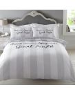 This Sweet Dreams duvet set will transform your bedroom with a modern appearance and feel by adding this classic duvet cover set to your bedroom decor. This reversible bedding set has a modern sweet dreams design and colour scheme and comes with matching pillowcases. Add a touch of class with this 'sweet dreams, sleep tight, good night' bedding set. This duvet set is made from 100% polyester making it soft, comfortable and easy care.