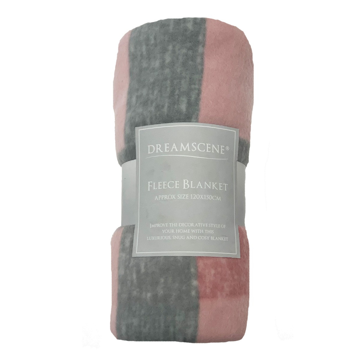 OHS Tartan Check Fleece Throw - Blush Pink/Grey