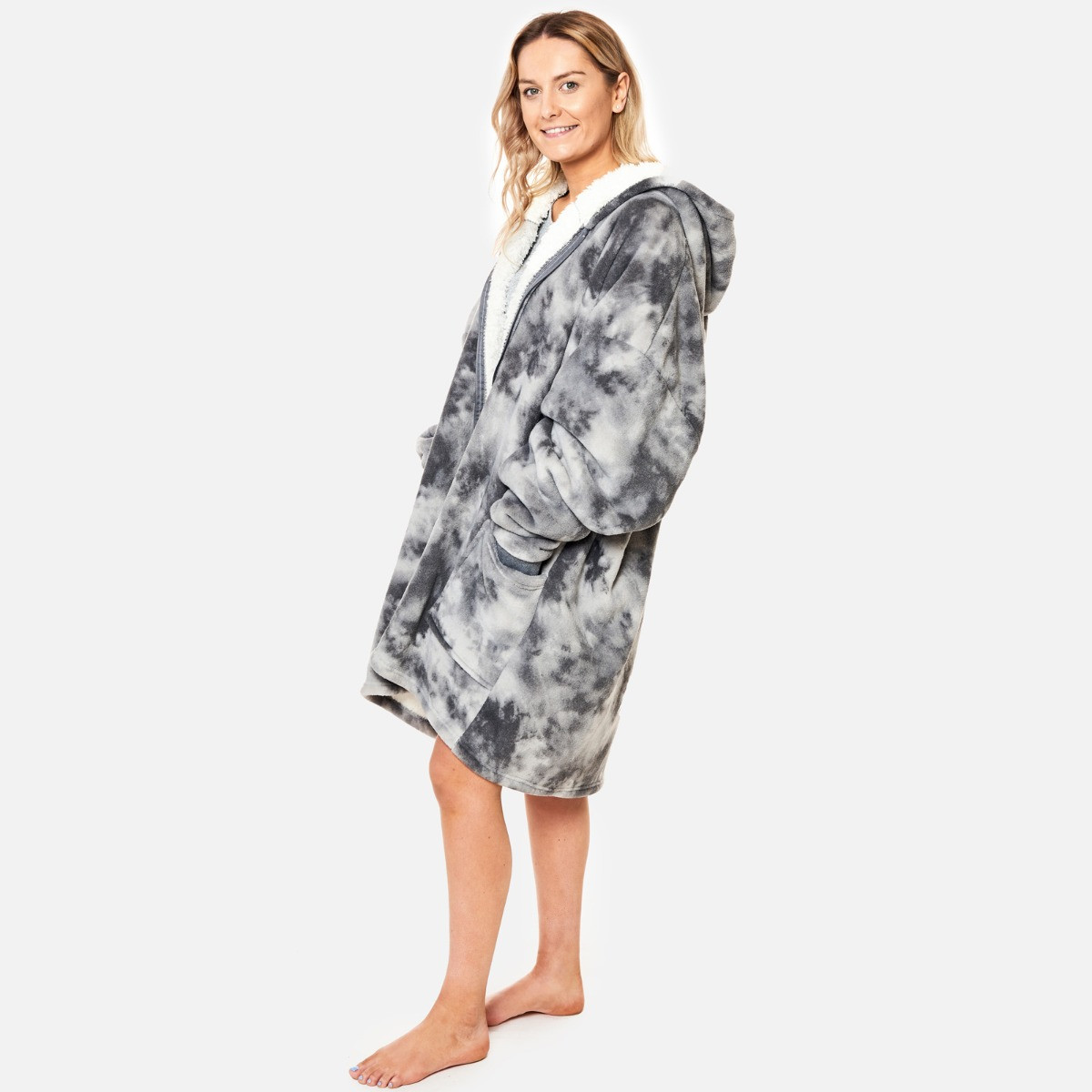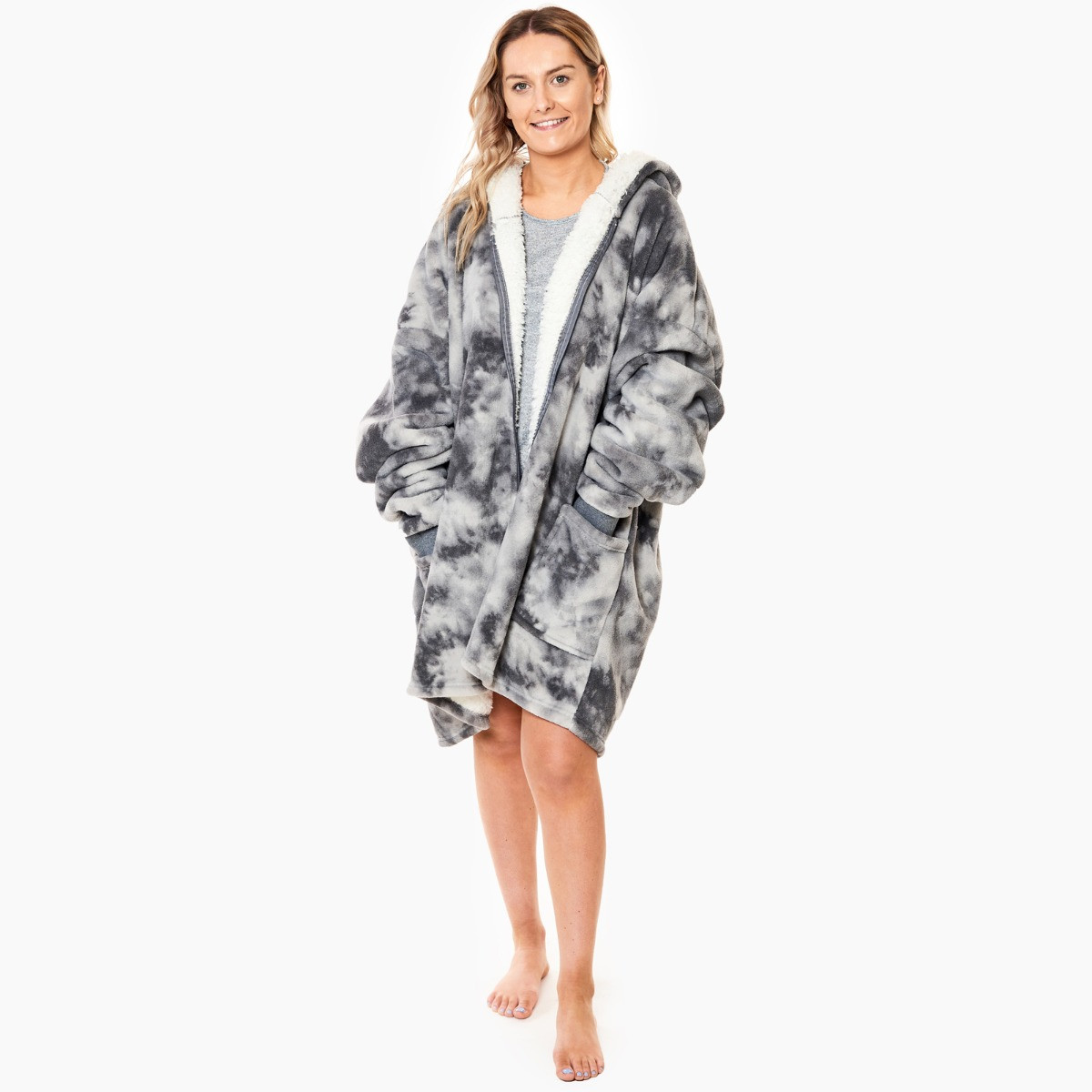 OHS Tie Dye Zip-Up Hoodie Blanket, Adults - Charcoal Grey