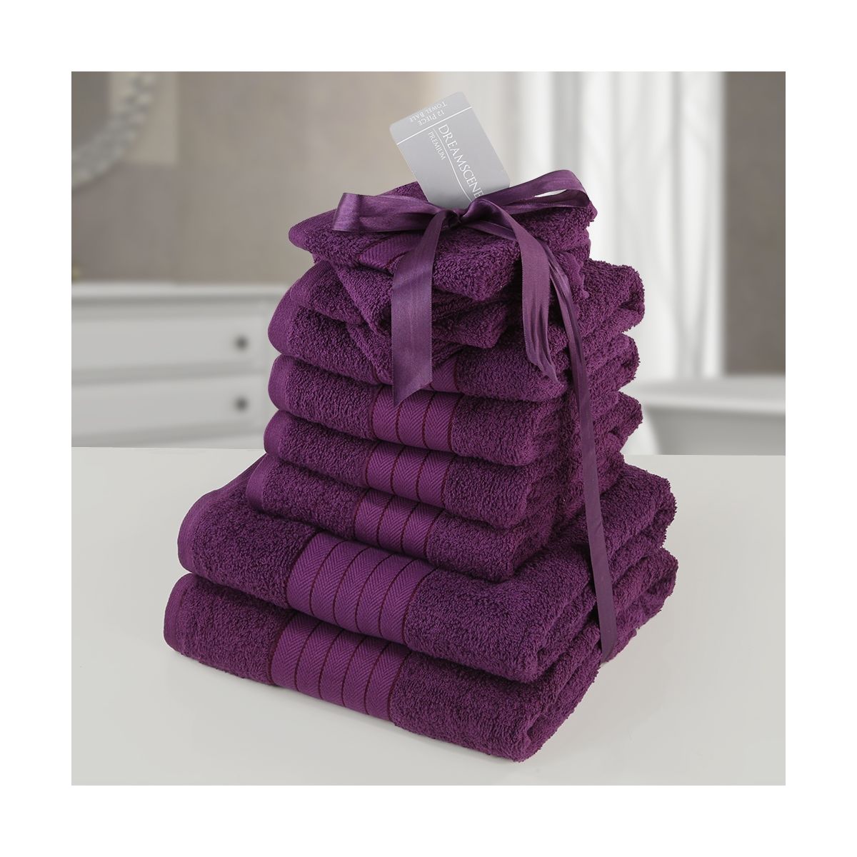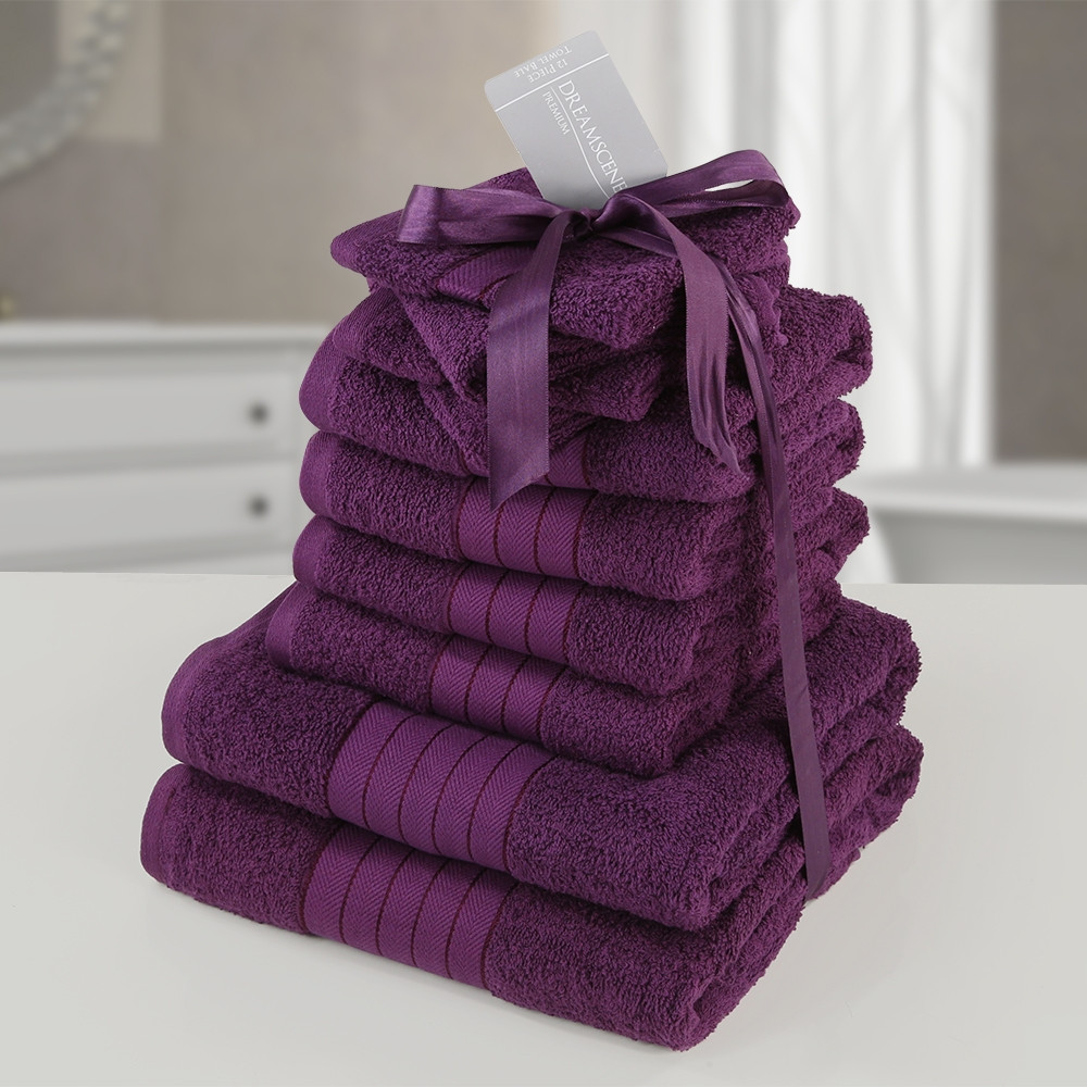 Includes: 4 face cloths (W30 x L30cm), 4 hand towels (W50cm x L80cm) and 2 bath towels (W70 x L115cm)