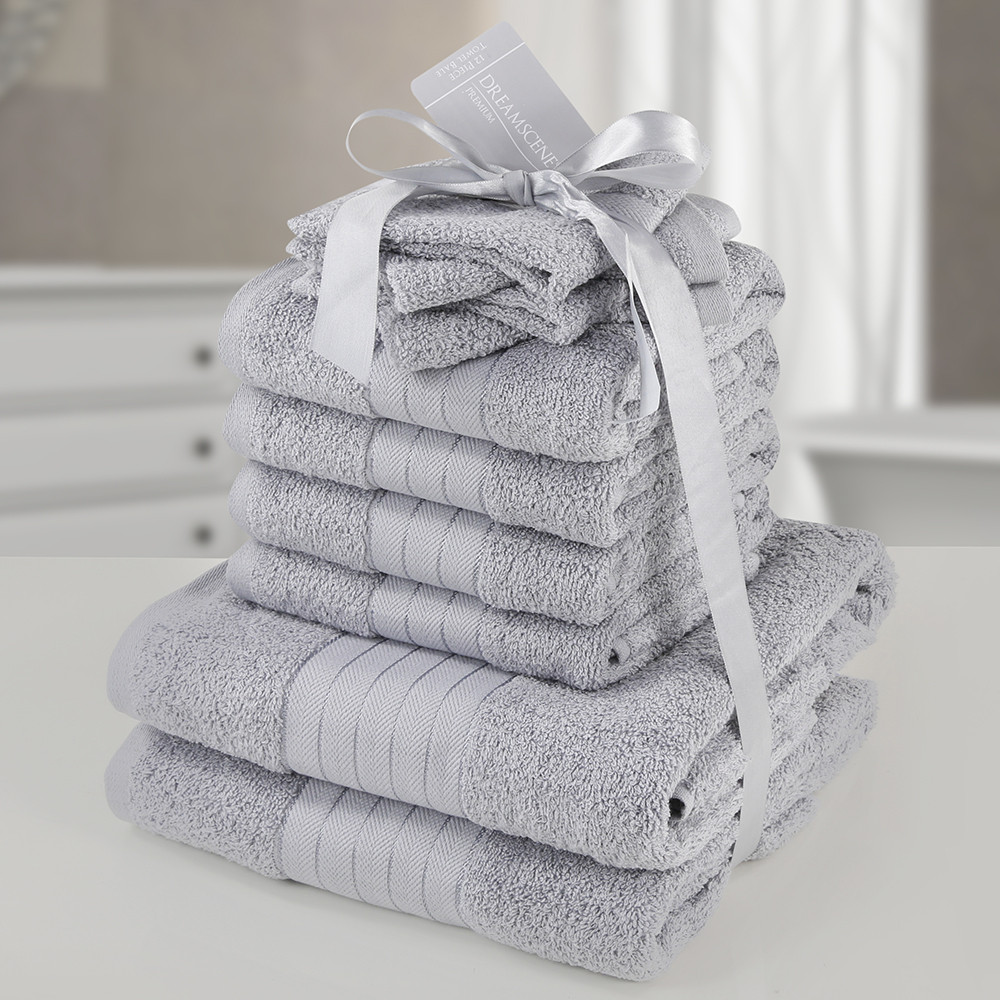 Includes: 4 face cloths (W30 x L30cm), 4 hand towels (W50cm x L80cm) and 2 bath towels (W70 x L115cm)
