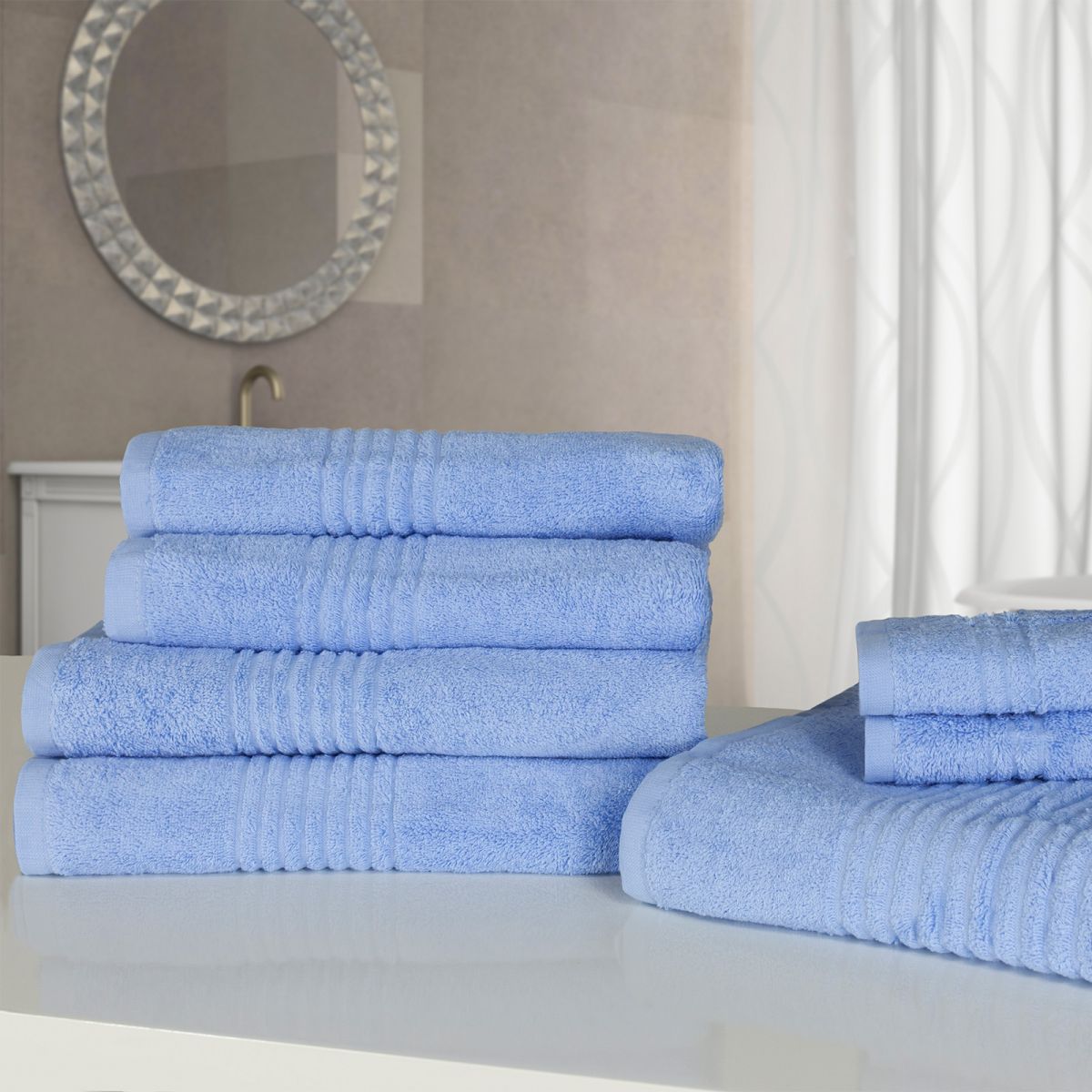 Luxurious 7 Piece Towel Bale Includes :- 2 face cloths (W30cm x L30cm), 2 hand towels (W50cm x L85cm), 2 bath towels (W70cm x L130cm) and 1 bath sheet (W90cm x L150cm)