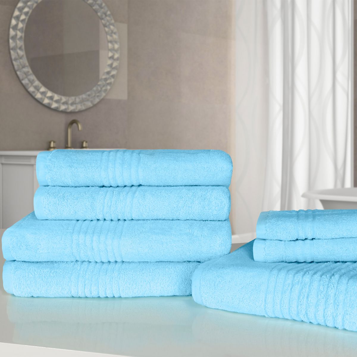 Luxurious 7 Piece Towel Bale Includes :- 2 face cloths (W30cm x L30cm), 2 hand towels (W50cm x L85cm), 2 bath towels (W70cm x L130cm) and 1 bath sheet (W90cm x L150cm)
