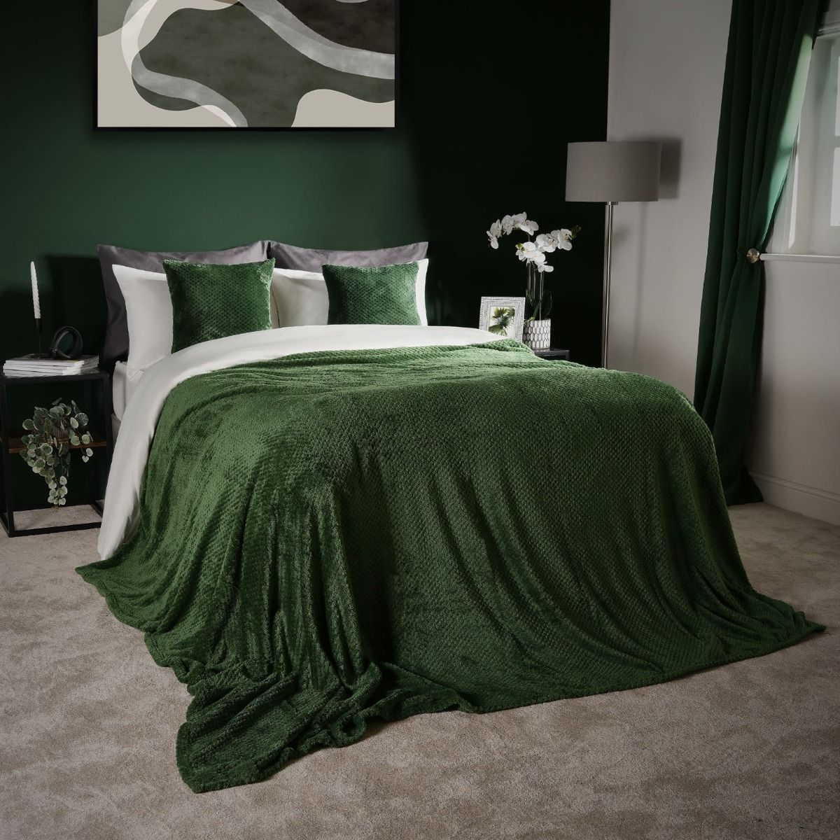 OHS Waffle Fleece Throw, Forest Green - 125 x 150cm