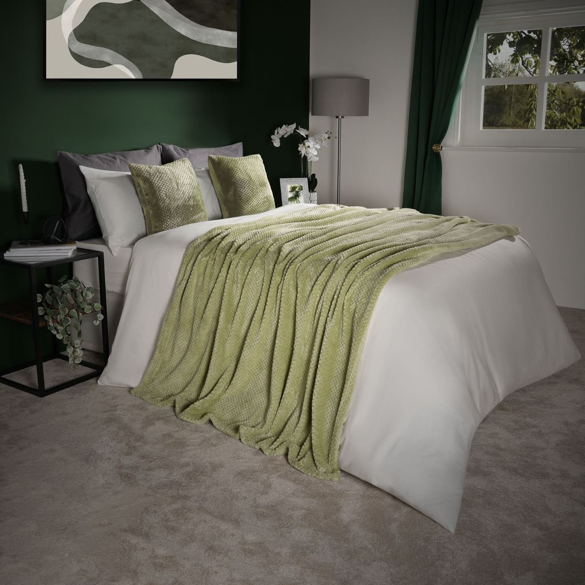 OHS Waffle Mink Throw, Sage - 150 x 200cm