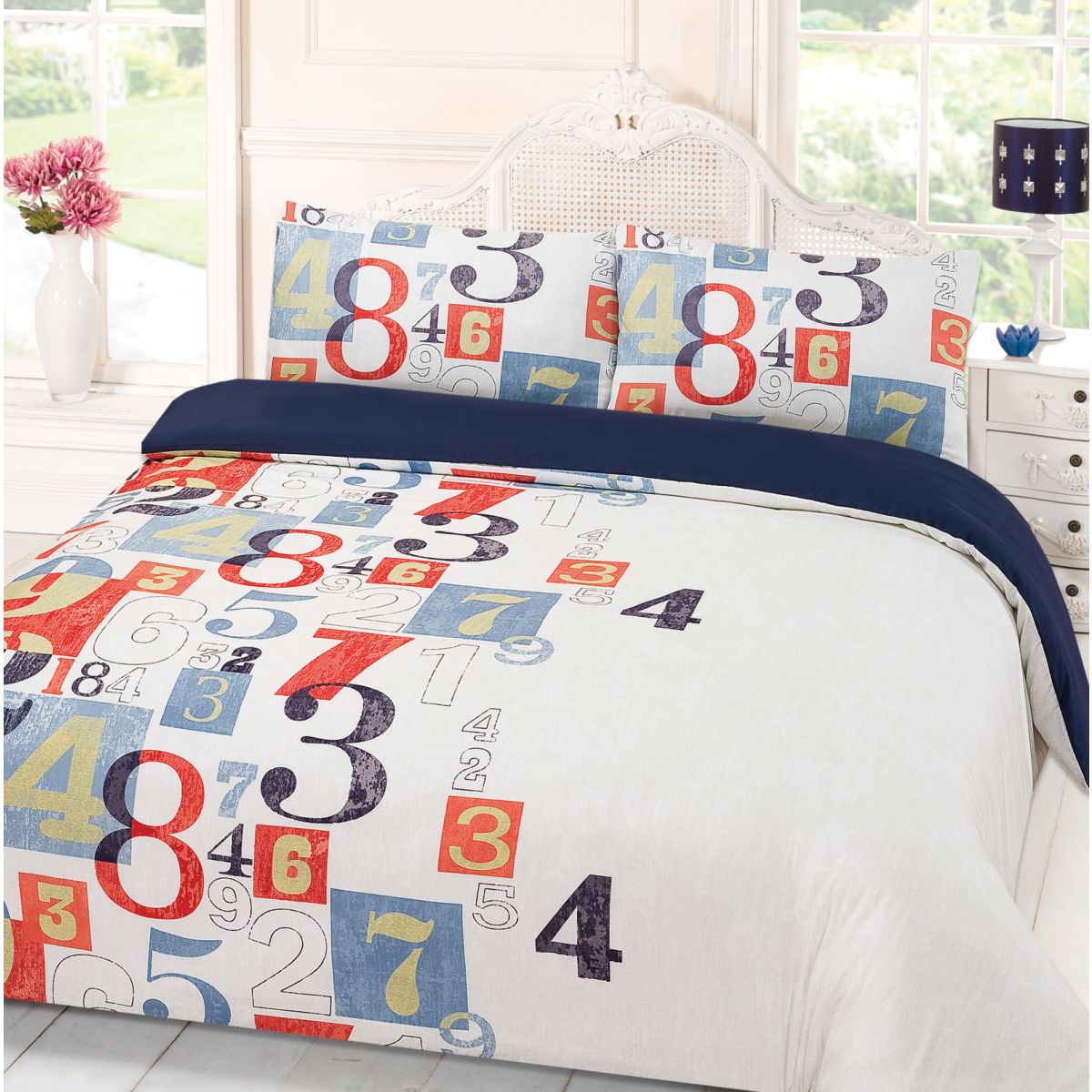 This Digit duvet set will transform your bedroom with a modern appearance and feel by adding this soft duvet cover set to your bedroom decor. The Digit bedding has a stylish geometric number design and plain reversible colour scheme. Comes with matching pillowcases. This duvet set is made from 100% polyester making it soft and comfortable.