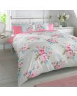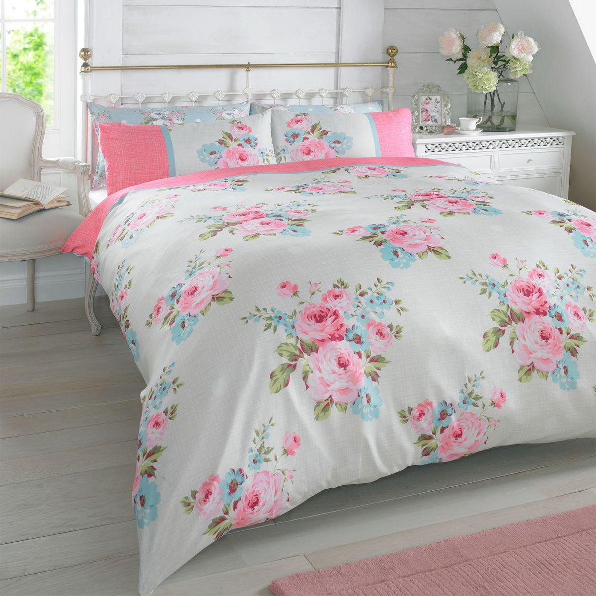 Duvet Cover with Pillowcase Bedding Set Floral Rosie Pink Blue Green - Double