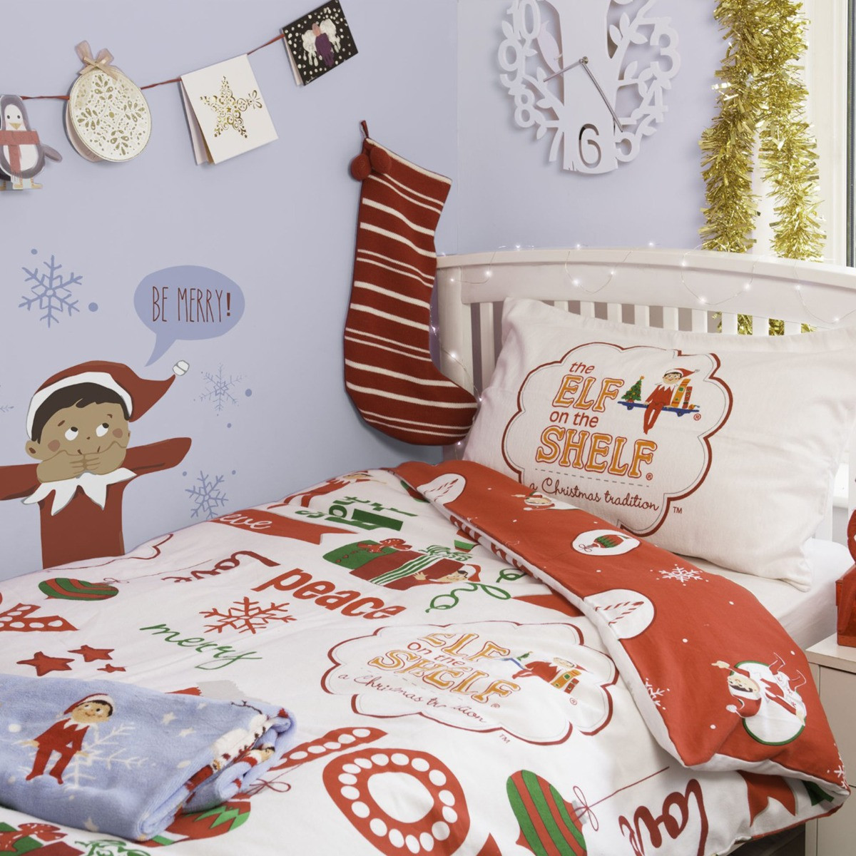Introducing the Elf On The Shelf A Christmas Tradition Reversible Duvet Cover Set, a delightful addition to your holiday décor. This festive duvet cover set features two charming looks in one. Made from soft polycotton fabric, it provides a cosy and comfortable night's sleep. Perfect for bringing the magic of Christmas to your bedroom, the reversible design ensures versatile styling options for a joyful holiday season.
