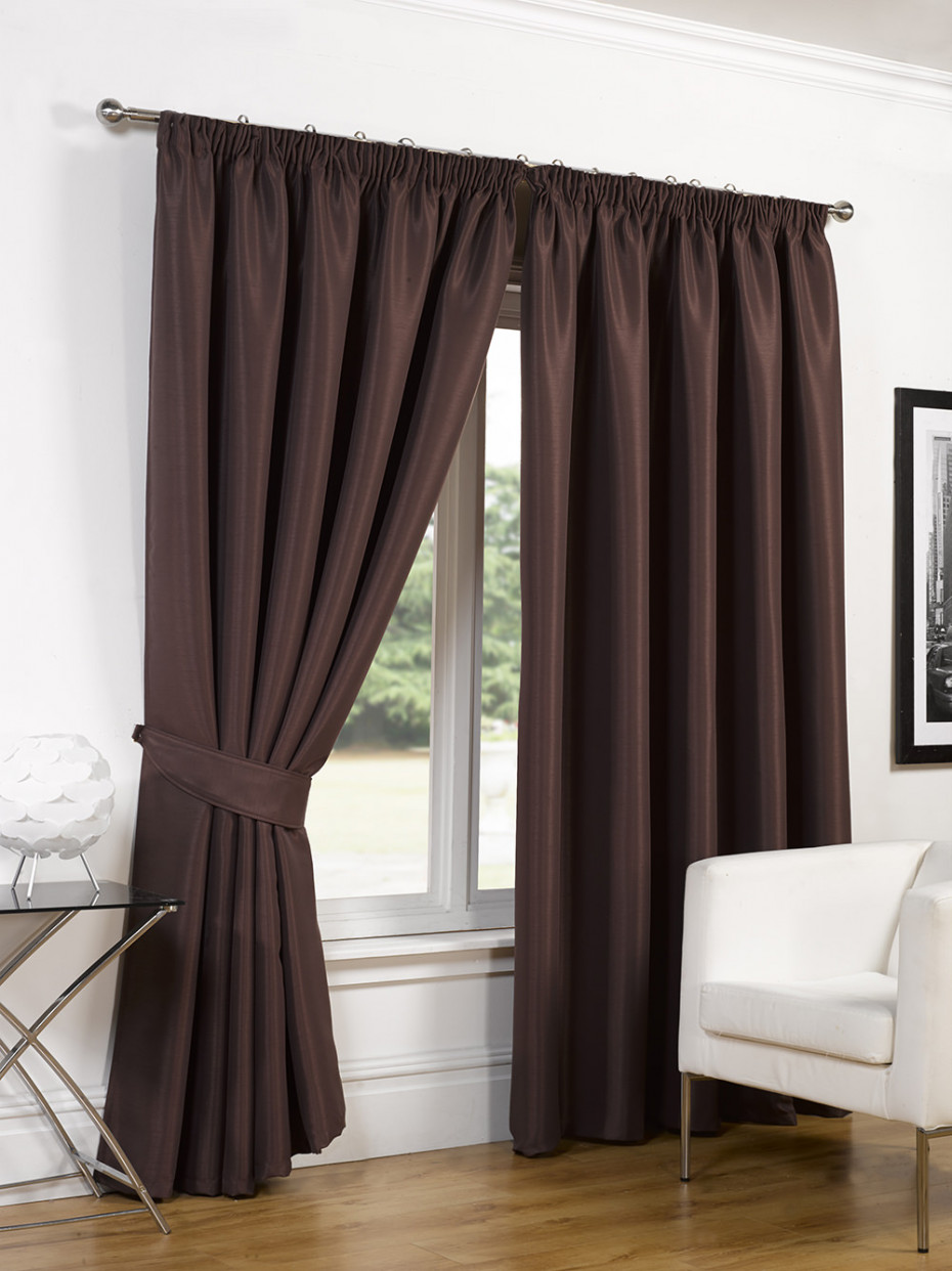 Faux Silk Blackout Curtains - Chocolate