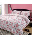Colour: 2 in 1 design - reversible animal print pink flamingo on a white & grey background duvet set.