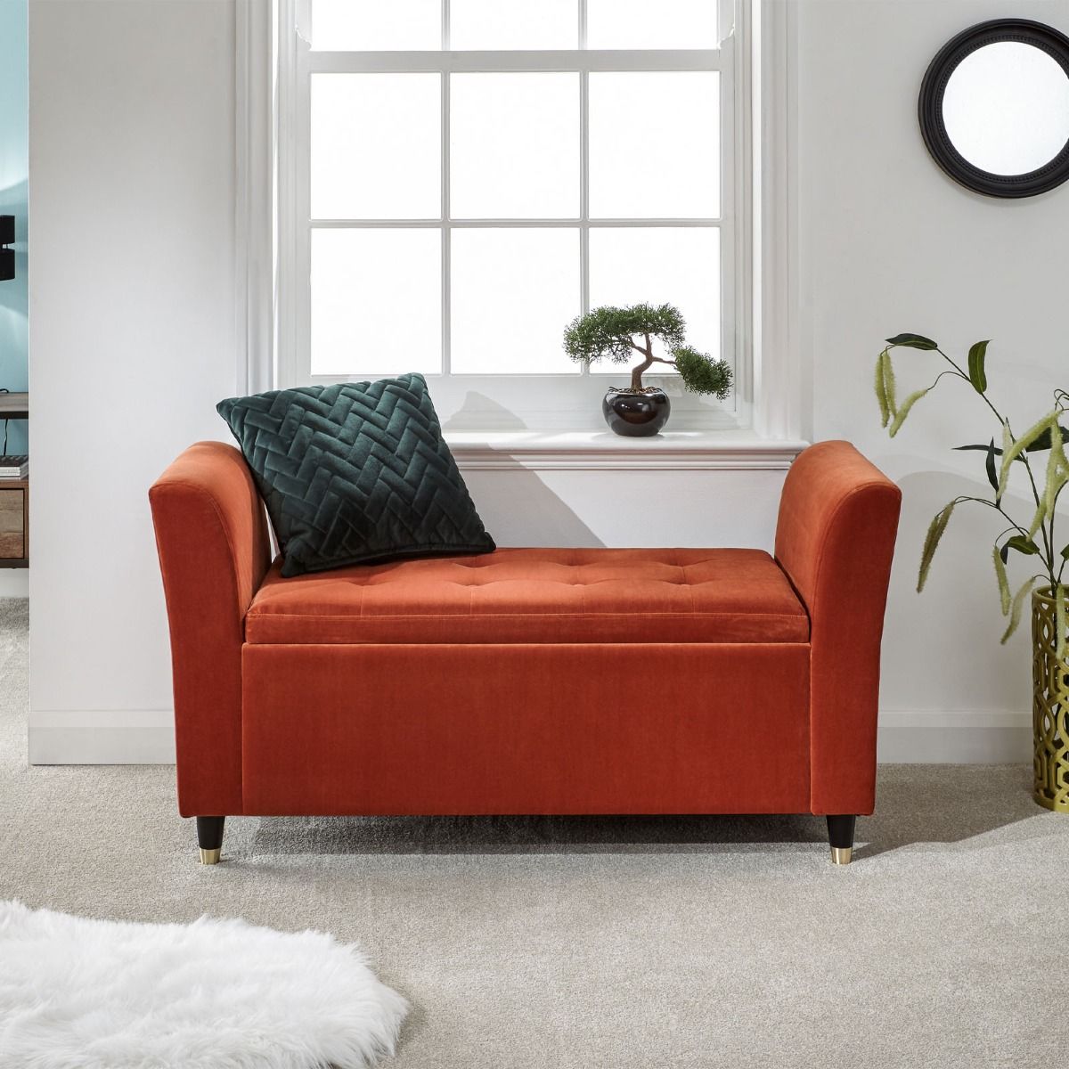 Introducing Genoa, this elegant storage window seat is a masterclass in understated style. Simple and unfussy lines are enhanced with subtle details; taper curved arms flank a quilted button top while solid wooden legs are tipped with gold metal-clad feet - features that elevate this design to stand out from its contemporaries. Practicality is not forgotten with a generous 88 litre lined storage area and a solid wooden frame provides a sturdy base for Genoa's gorgeous plush fabric upholstery with velvet pile. Upholstered in soft matt plush fabric with velvet pile Foam cushioned seat pad with quilted button detail 88 litre lined storage compartment Assembled Size: 60 x 120 x 45