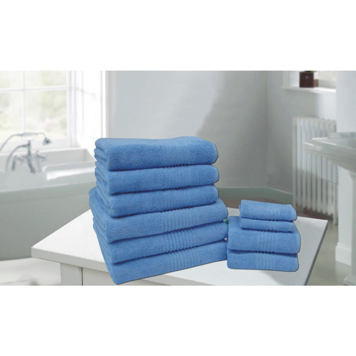 OHS 10 Piece Towel Bale Gift Sets 550 gsm - 100% Cotton - Blue