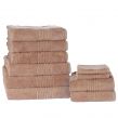 Includes: 4 face cloths (W30 x L30cm), 4 hand towels (W50cm x L80cm) and 2 bath towels (W70 x L115cm)