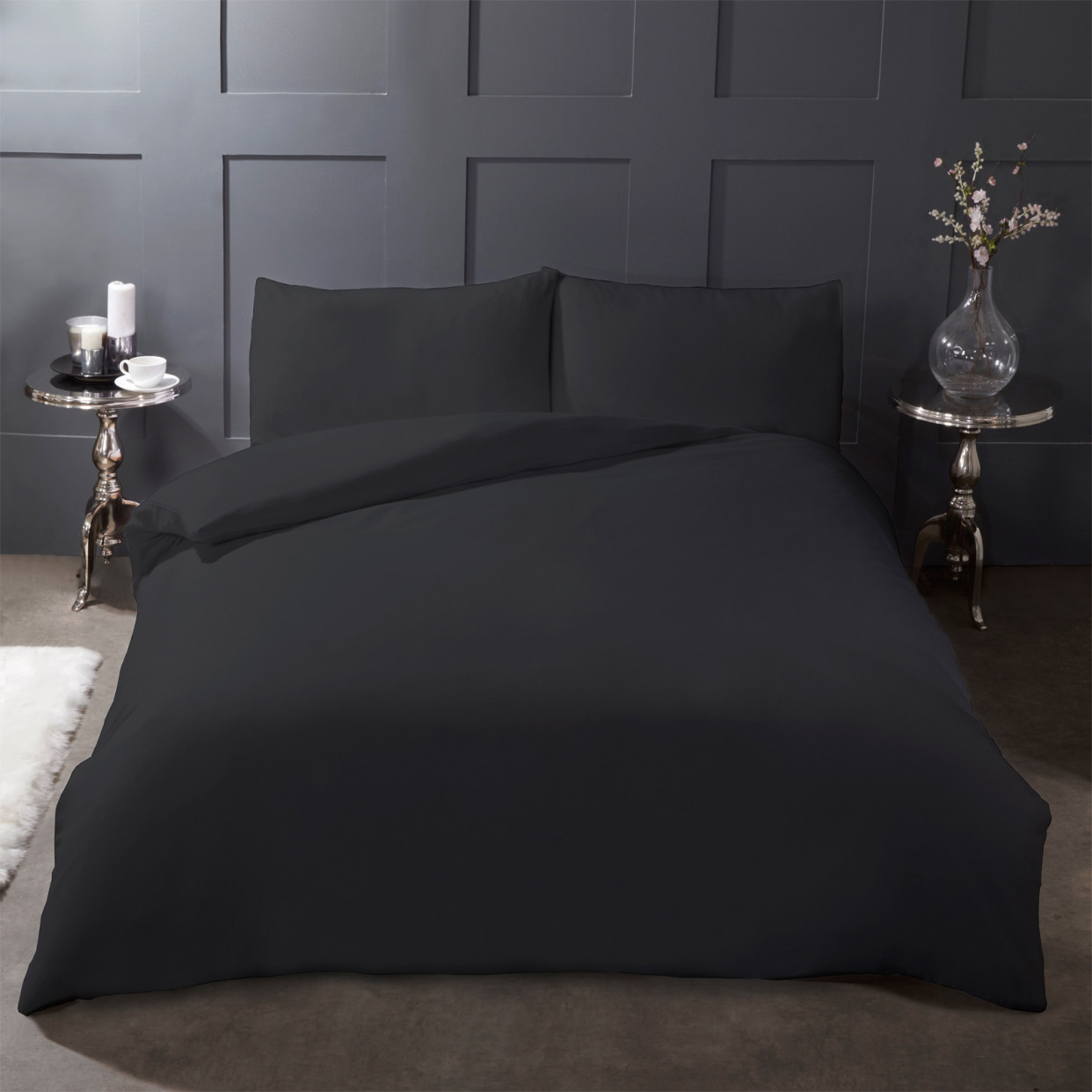 OHS 100% Brushed Cotton Flanelette Duvet Cover Set - Charcoal Black