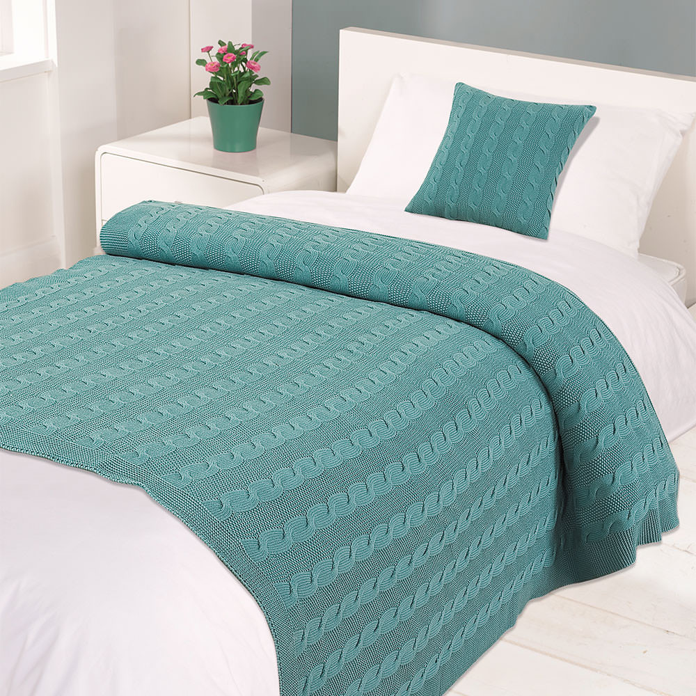 OHS Cable Knit 100% Cotton Throw - Duck Egg