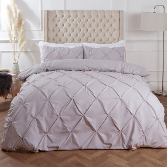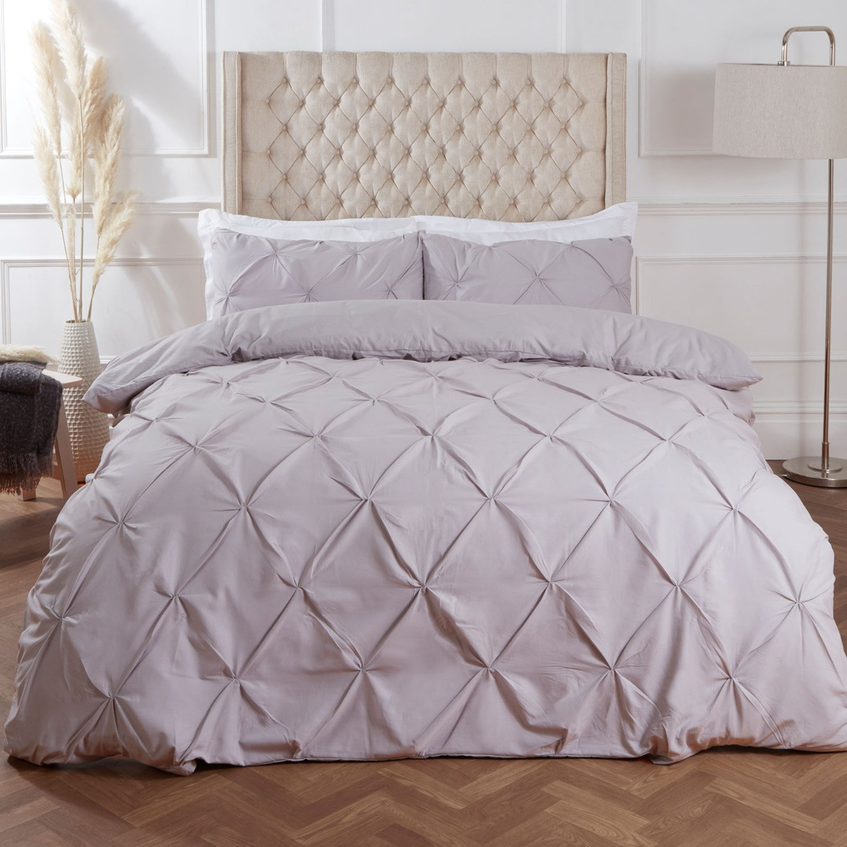 OHS Diamond Pintuck Pinch Pleat Duvet Cover Set, Silver Grey - Double