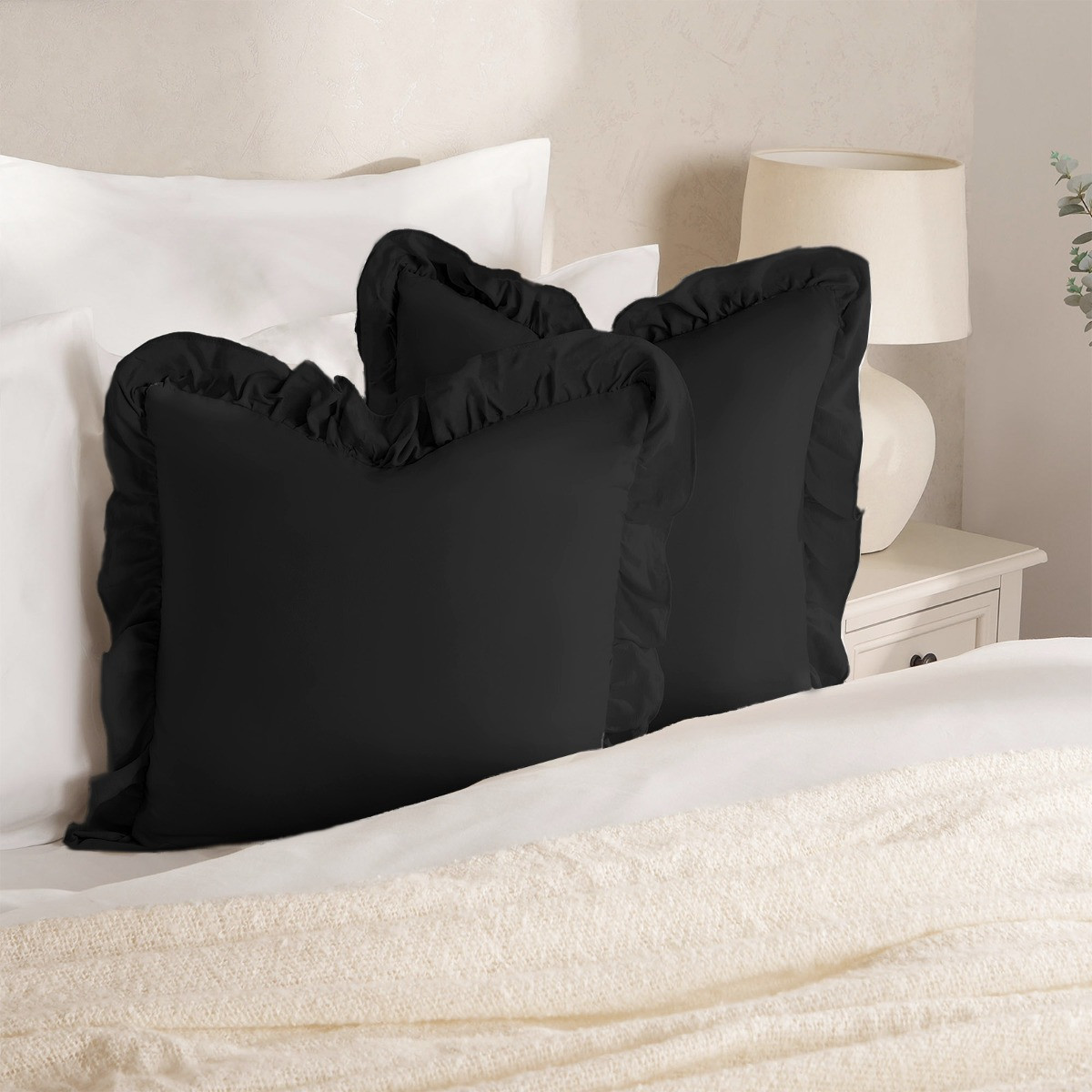 OHS Frill Cushion Covers - Black