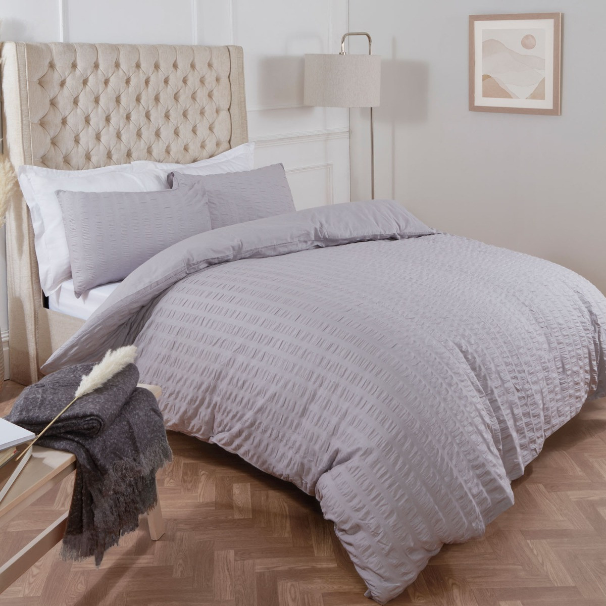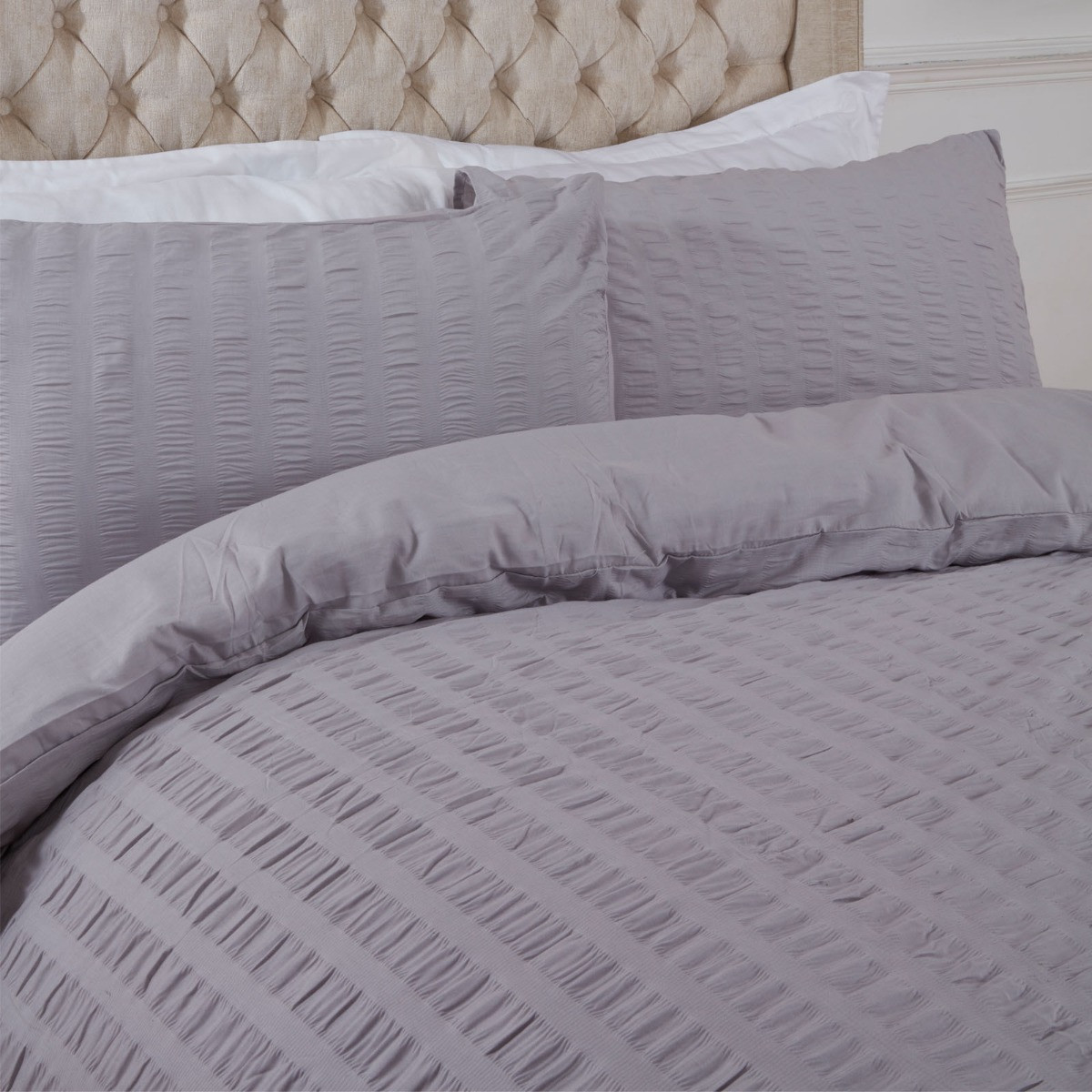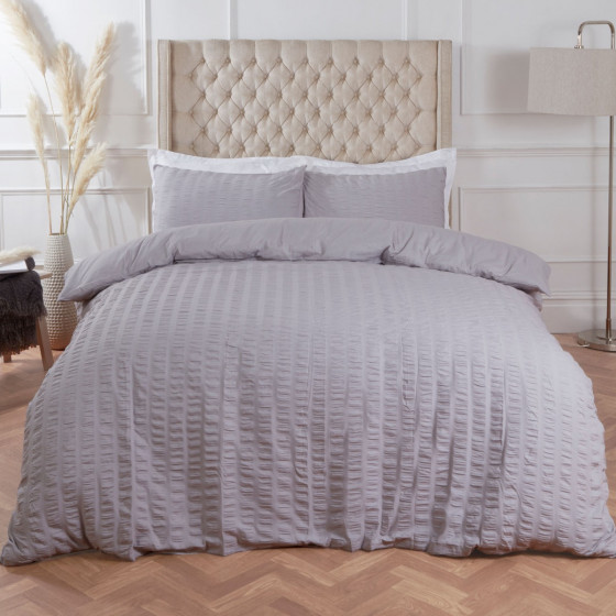 OHS Seersucker Duvet Set, Silver - Single