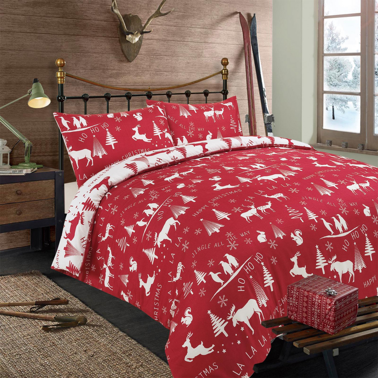 This Christmas themed duvet cover set will give the room a warm wintery feel. The reversible bedding features various Christmas animals and trees, surrounded by snowflakes. With the 'Ho Ho Ho bedding print, this will add to the festive theme. Made from polyester, this bedding set is soft, comfortable and durable. Which allows for a more relaxing and comfortable night
