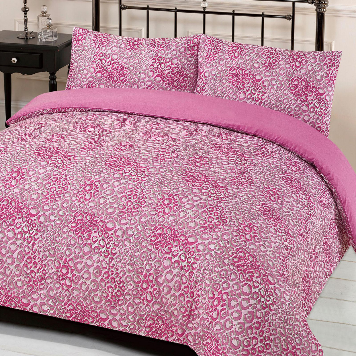 Colour: Pink leopard print with a reversible plain Pink print set.