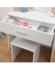 Create a dedicated vanity space in your bedroom with this attractive dressing table, mirror and stool from the Julia collection. The handy drawer will house all your jewellery and cosmetics whilst the three gorgeous finishes available offer stylish appeal for your home. Finished off with a sleek rectangular metal handle. Large Mirror Large Storage Drawer Matching Padded Stool Included Assembled Size: 132 x 82 x 39