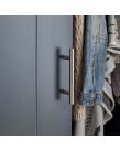Kendal brings a touch of country cottage chic to any bedroom – this two-door wardrobe is a perfect example. The robust frame is mounted on a proud plinth and fitted with a pair of planked-style doors, incorporating a handy drawer beneath. The piece is painted in soft grey and finished with a bevelled oak-effect top that adds a natural contrast. Accessorised with brushed steel handles, it makes an elegant choice. Thick Oak-effect top with feature design bevel creates a stunning high-quality look and feel. Elegant brushed steel handles feature on the panel effect doors inkeeping with the modern country aesthetic. Large amounts of storage options; from the deep main wardrobe to the 48 Litre storage drawer. Assembled Size: 180 x 78 x 57.8