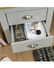 A stylish shaker-inspired bedside table that's perfect for kitting out a bedroom in first-class style. The sleek lines, soft grey or cream foiled finish with oak tops and brushed steel handles create a sophisticated impression. The bedside table provides effective storage with 2 drawers. Ideal for a room where understated elegance is the goal. Contrasting Oak Effect Top Country Cottage Styling Plenty of Storage Space Assembled Size: 48.2 x 45 x 39.5