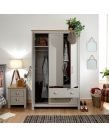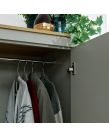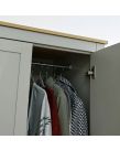 A stylish shaker-inspired wardrobe that's perfect for kitting out a bedroom in first-class style. The sleek lines, soft grey or cream foiled finish with oak tops and brushed steel handles create a sophisticated impression. The wardrobe provides effective storage with a good mix of hanging, drawer and shelf space. Ideal for a room where understated elegance is the goal. Contrasting Oak Effect Top Country Cottage Styling Plenty of Storage Space Assembled Size: 180 x 112 x 52