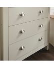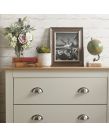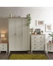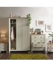 It's easy to create a bedroom that showcases effortless chic, with this stylish four-piece furnishing pack. The shaker-inspired design exudes understated luxury. Comprising a three-door wardrobe, four-drawer chest and pair of neat lamp tables, each piece is finished in cream or grey foil with an oak top and brushed steel handles. A well-thought-out mix of hanging and flat storage that's suitable for a double room. Contrasting Oak Effect Top Country Cottage Styling Plenty of Storage Space Assembled Size: 0 x 0 x 0