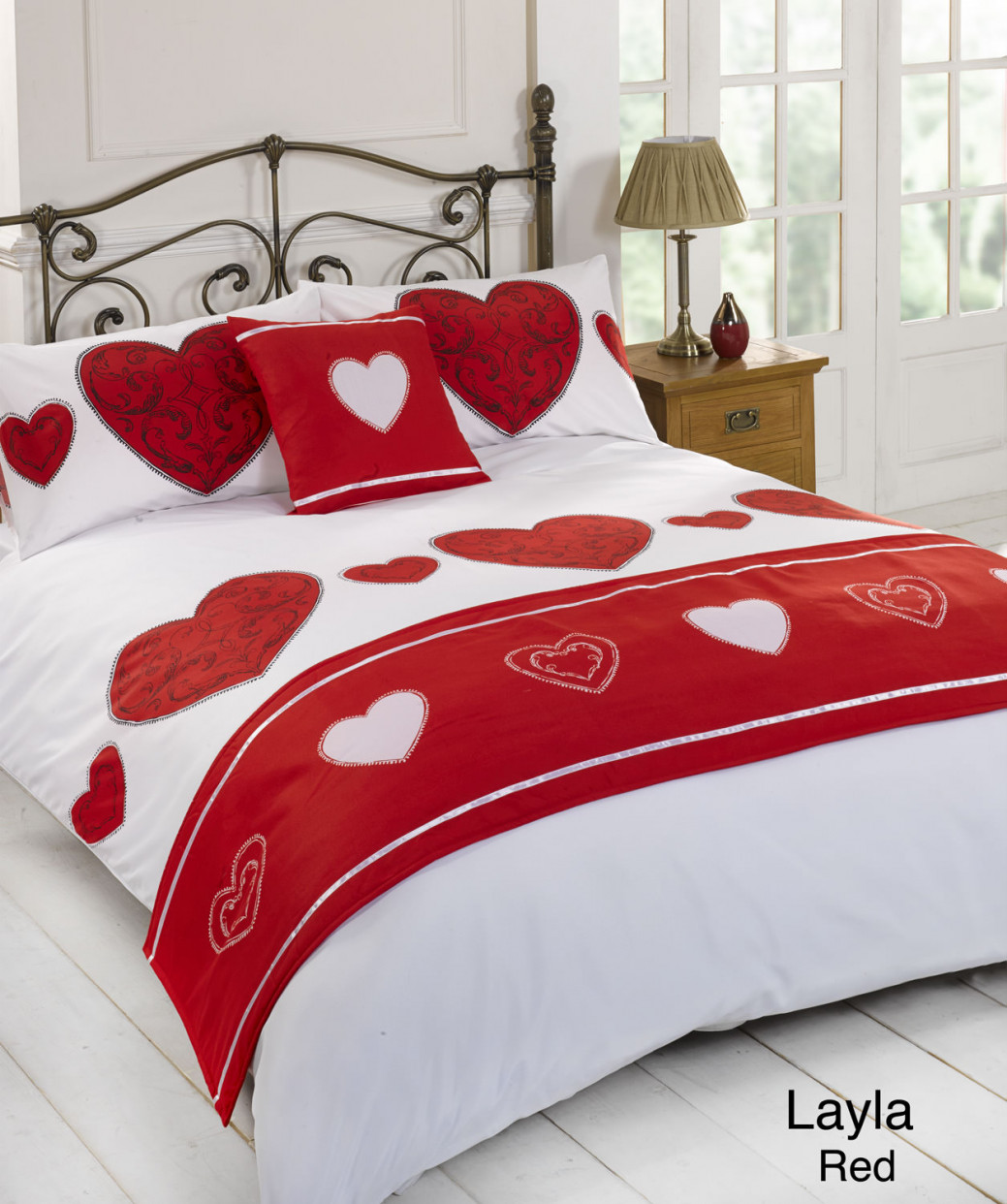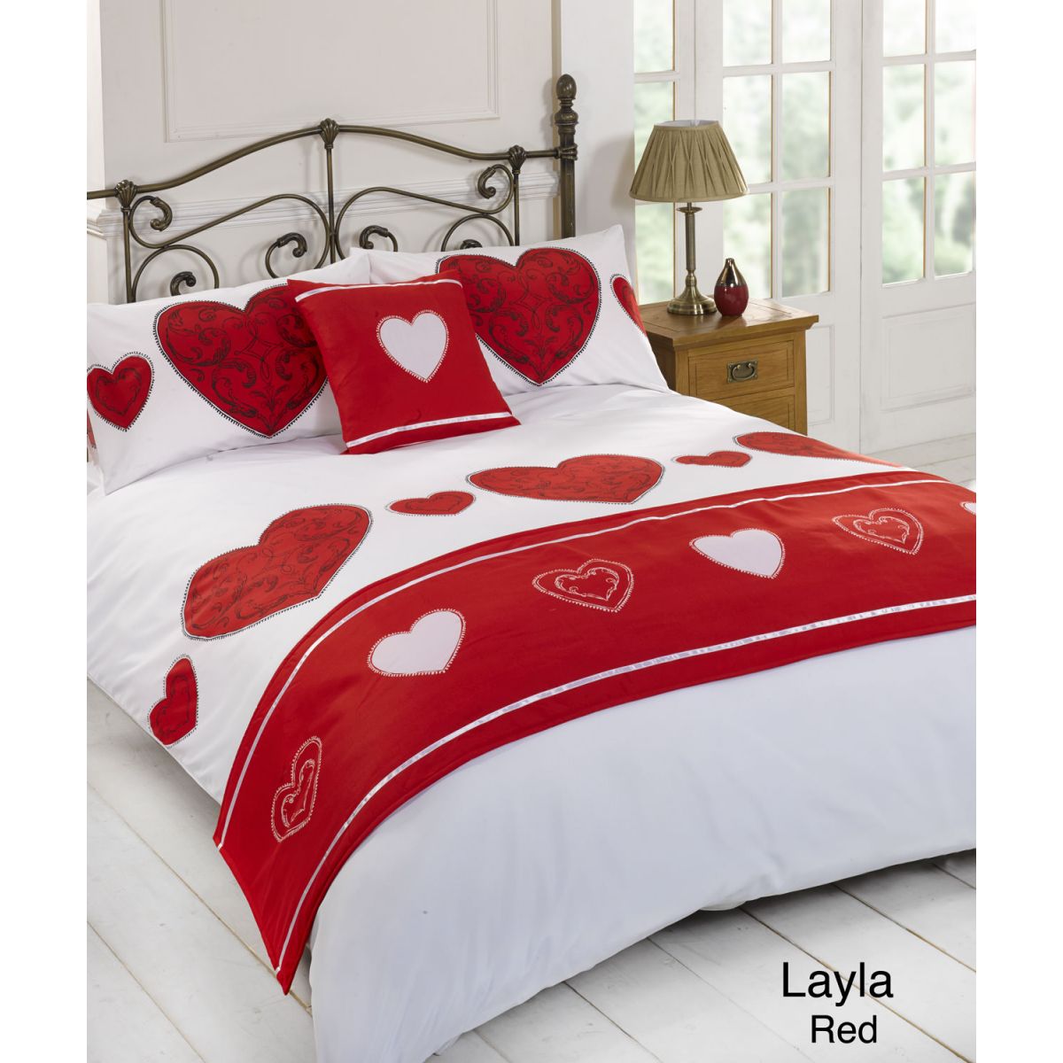 Layla Duvet Quilt Bedding Bed In A Bag Cushion Cover Runner - Red, Single