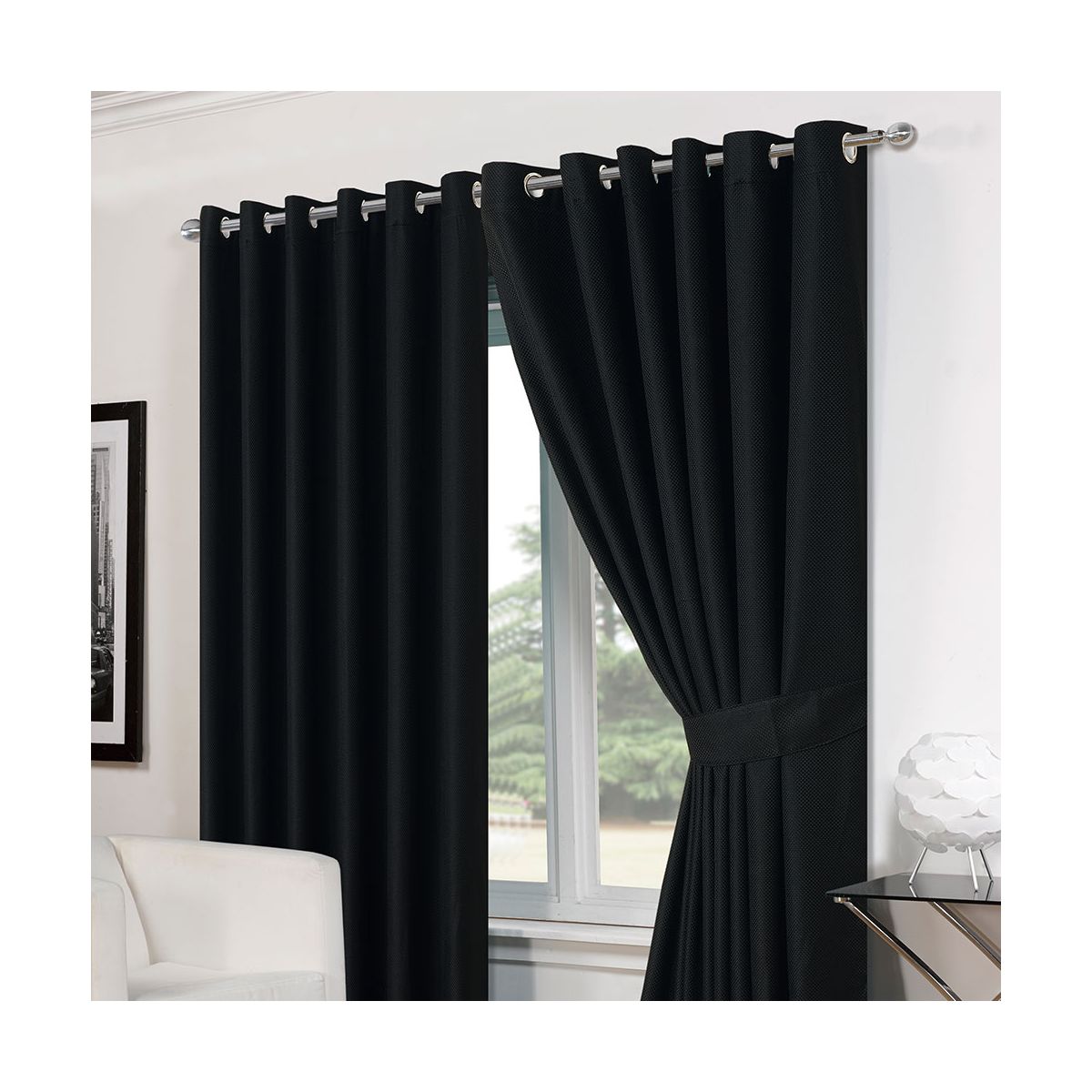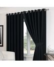 Luxury Basket Weave Lined Eyelet Curtains with Tiebacks - Black