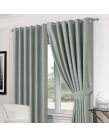 Luxury Basket Weave Lined Eyelet Curtains with Tiebacks - Duck Egg 90"x72"